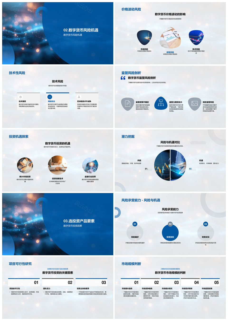 风云办公提供的数字货币投资风险管理与项目研究指南PPT模板,下载格式为pptx,一共28页,作品中文字及图均可以修改和编辑,图片更改请在作品中右键图片并更换,文字修改请直接点击文字进行修改。
