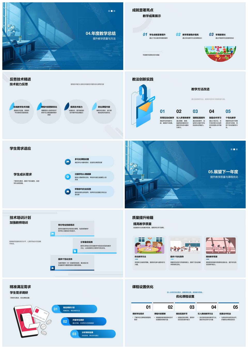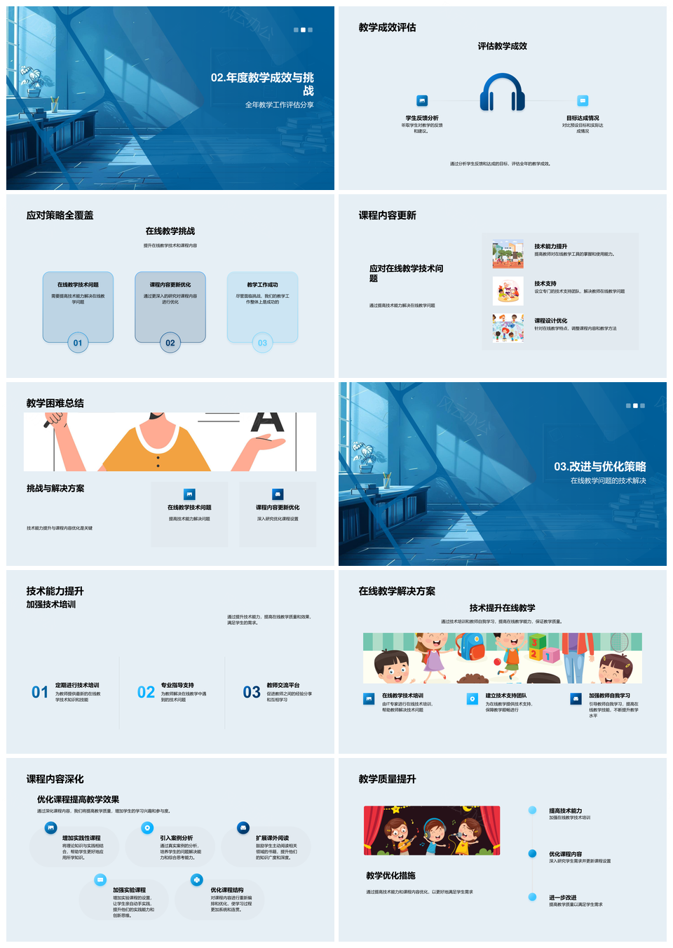 2025教学年度总结反馈分析技术挑战目标计划课程学生在线教学PPT模板推荐