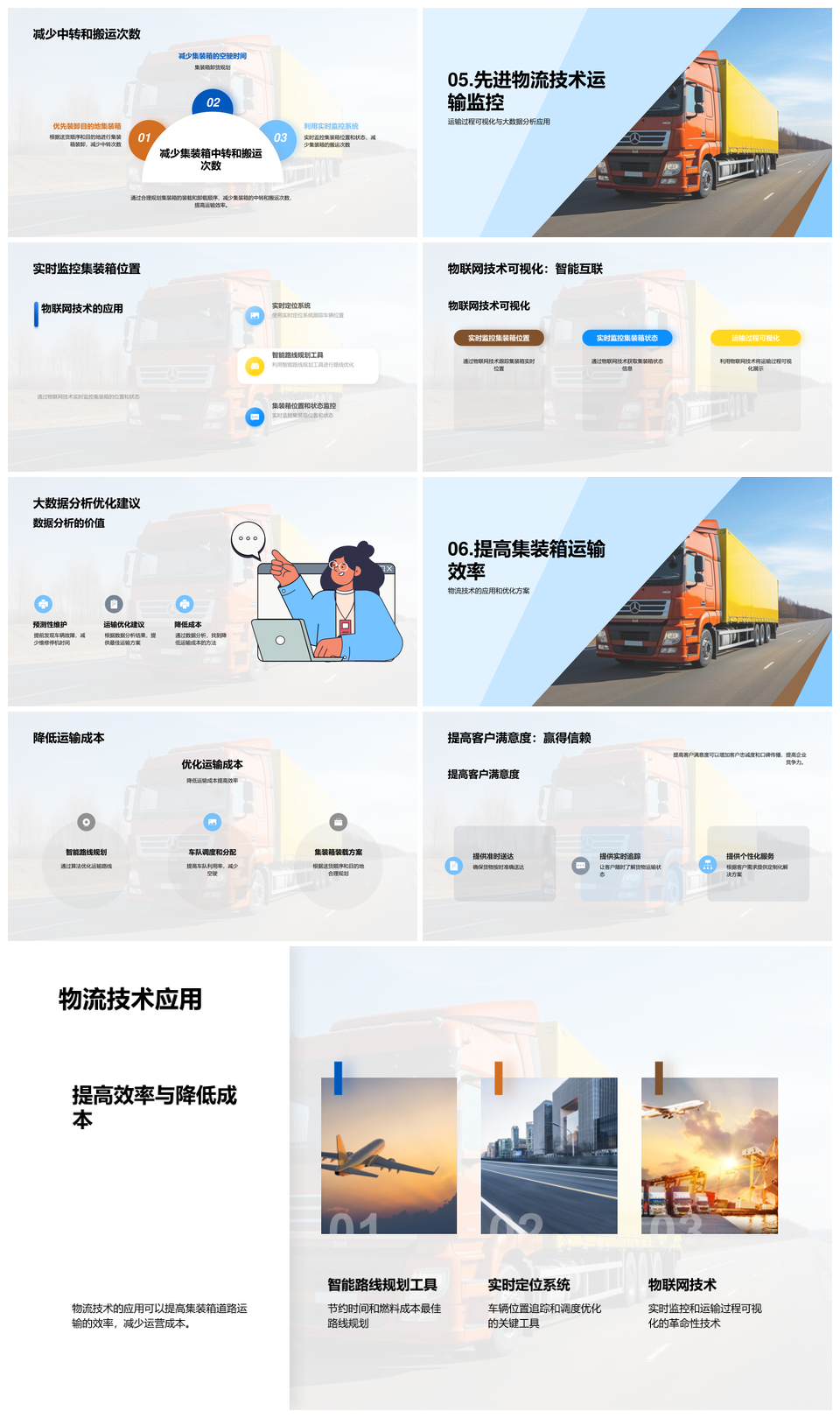 物流智能路线优化集装箱运输效率降成本PPT模板推荐