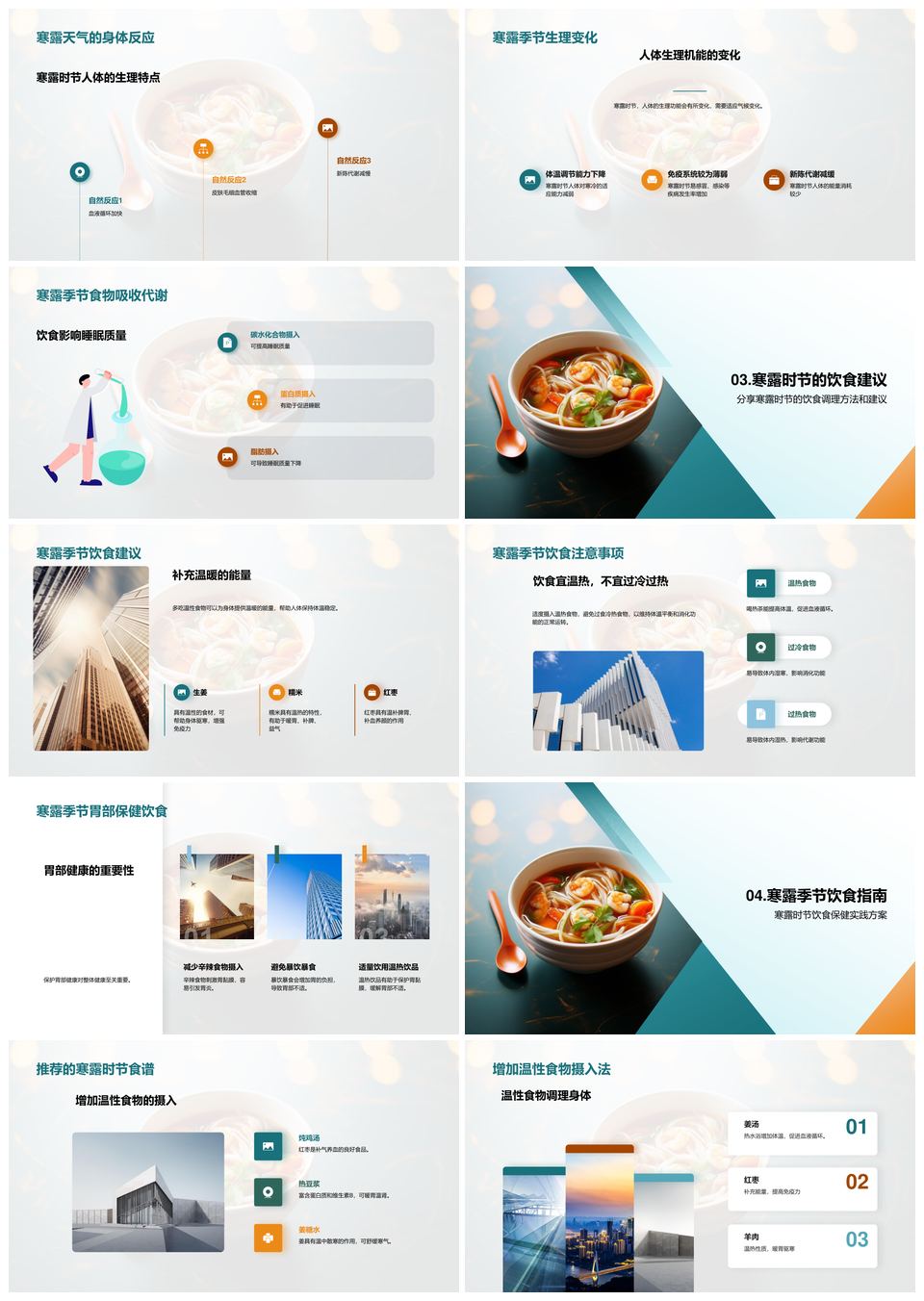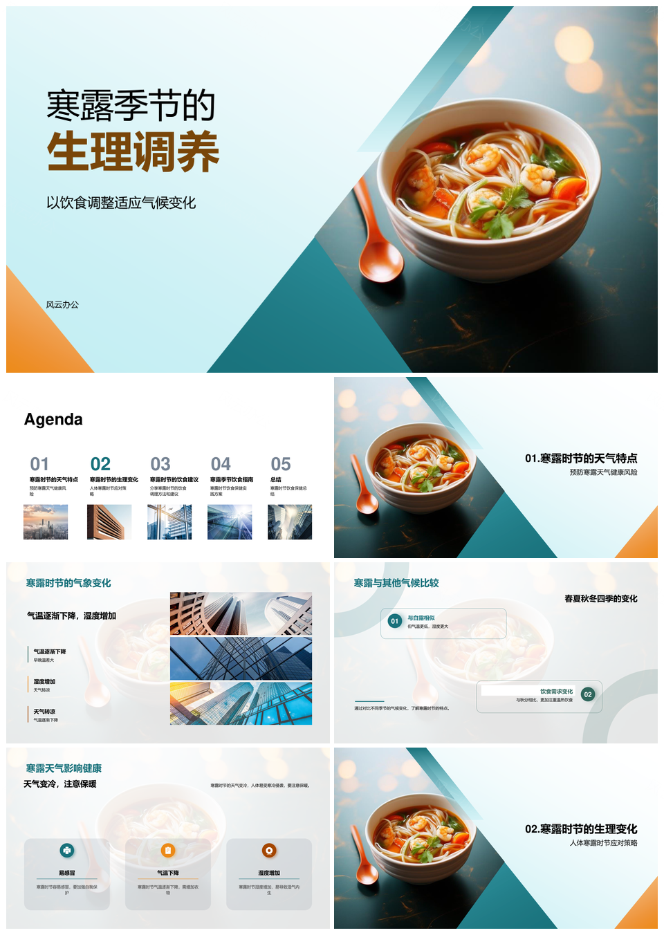 风云办公提供的寒露饮食调养适应气候变化健康养生PPT模板,下载格式为pptx,一共23页,作品中文字及图均可以修改和编辑,图片更改请在作品中右键图片并更换,文字修改请直接点击文字进行修改。