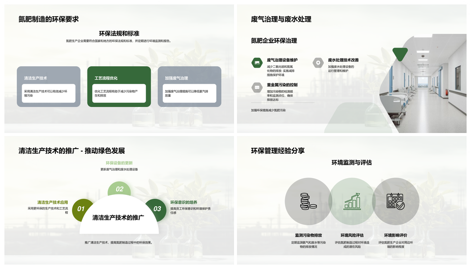 这是一张绿色氮肥制造环保清洁生产技术应用PPT模板,包含绿色、氮肥、制造、环保、清洁、生产技术、应用等主题内容,也可用作绿色氮肥制造环保、氮肥制造环保清洁、制造环保清洁生产技术、环保清洁生产技术应用、绿色氮肥制造、氮肥制造环保、制造环保清洁、环保清洁生产技术、清洁生产技术应用、绿色氮肥、氮肥制造、制造环保、环保清洁、清洁生产技术、生产技术应用等PPT场景使用。