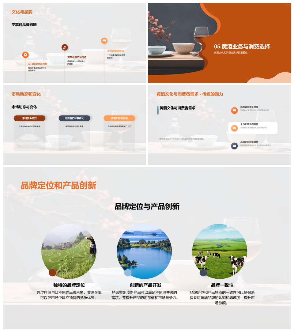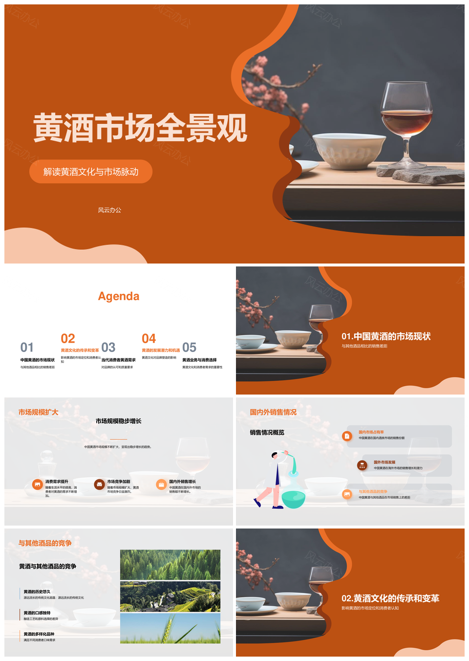 风云办公提供的中国黄酒文化消费制造与市场分析PPT模板,下载格式为pptx,一共23页,作品中文字及图均可以修改和编辑,图片更改请在作品中右键图片并更换,文字修改请直接点击文字进行修改。