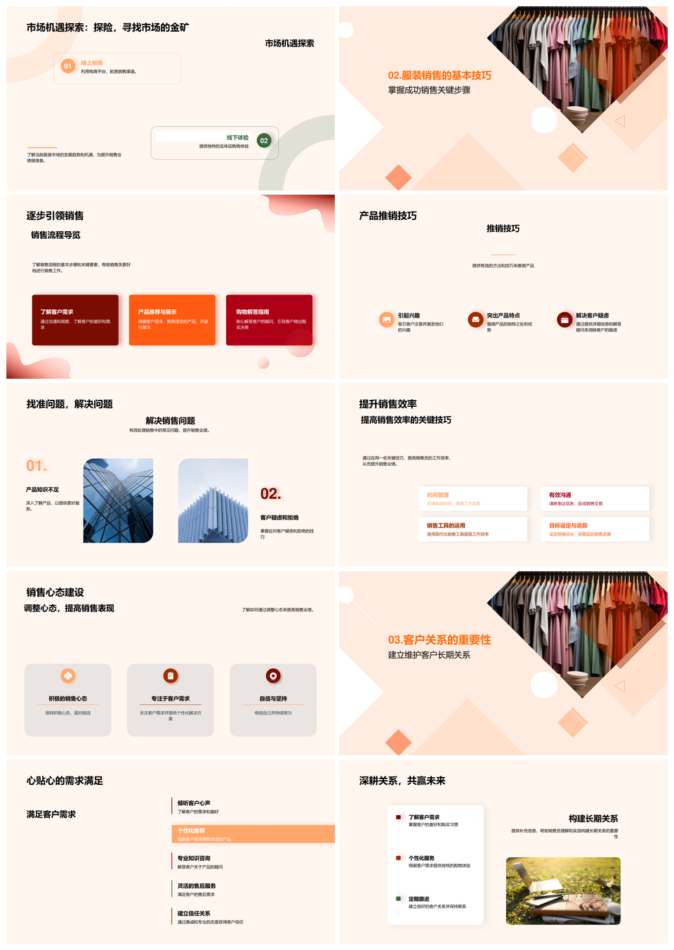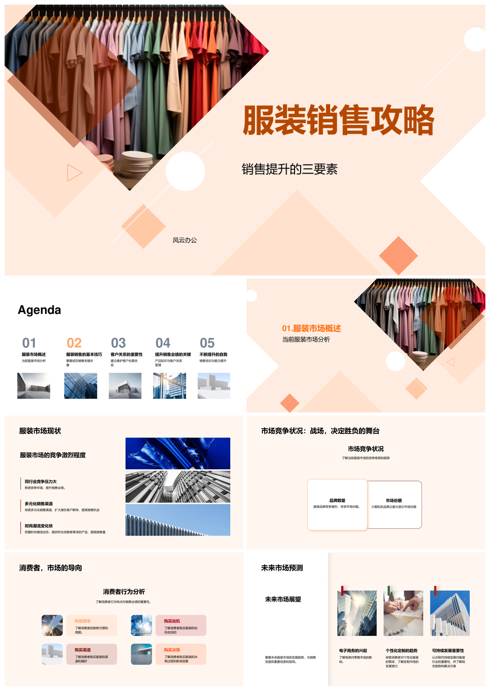 风云办公提供的服装销售提升实战技巧攻略PPT模板,下载格式为pptx,一共33页,作品中文字及图均可以修改和编辑,图片更改请在作品中右键图片并更换,文字修改请直接点击文字进行修改。