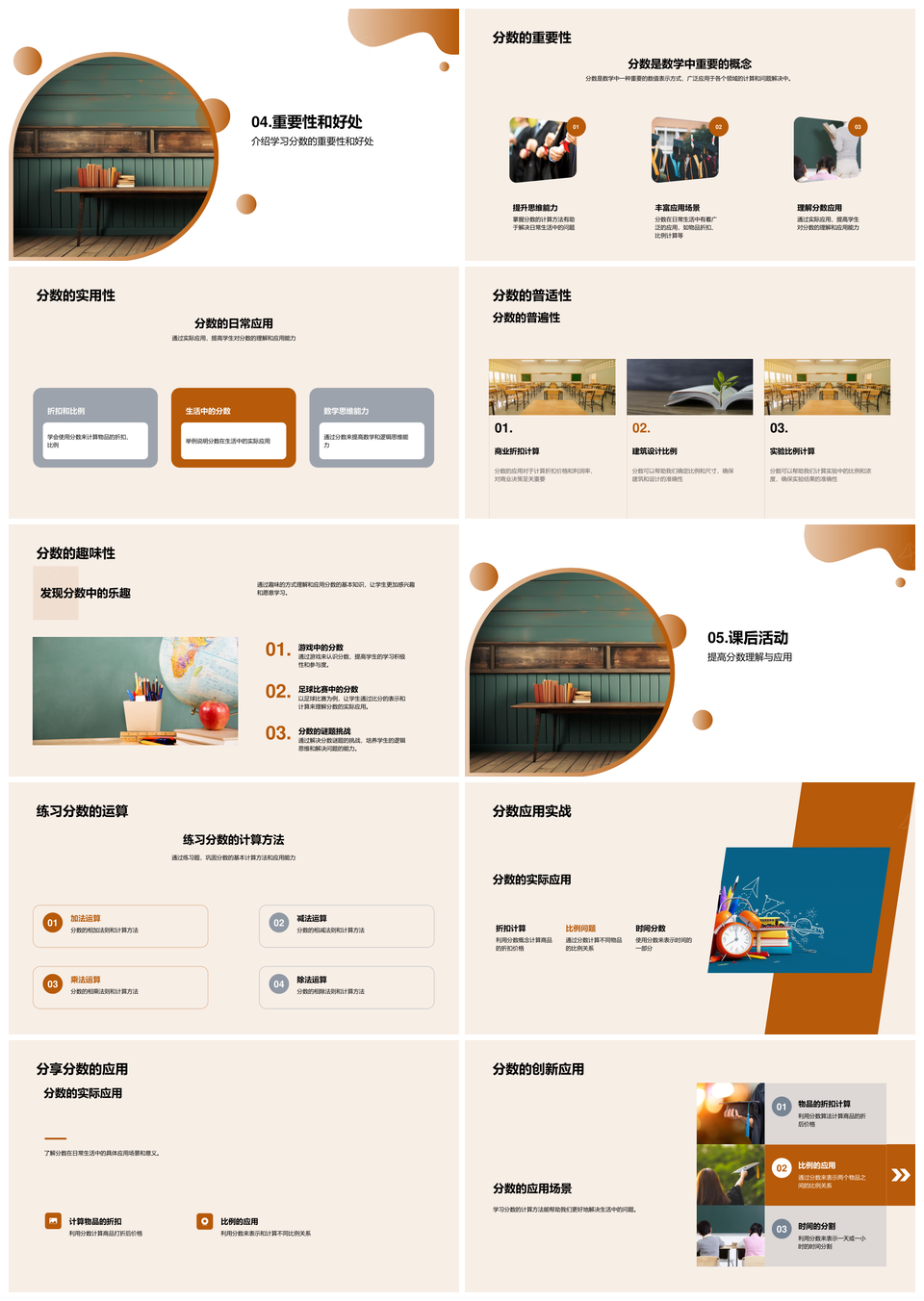 这是一张小学六年级分数运算教学课件黑板加减乘除公共分母PPT模板,包含小学六年级、分数运算、教学课件、黑板、加减乘除、公共分母等主题内容,也可用作小学六年级分数运算教学课件、分数运算教学课件黑板、加减乘除公共分母运算、黑板加减乘除公共分母、公共分母分数运算教学、六年级分数运算教学、分数加减乘除运算、教学课件黑板加减、加减乘除公共分母、公共分母运算教学、分数运算教学课件、六年级分数加减乘除、黑板教学课件加减、分数公共分母运算、教学课件公共分母等PPT场景使用。 风云办公提供的小学六年级分数运算教学课件黑板加减乘除公共分母PPT模板,下载格式为pptx,一共28页,作品中文字及图均可以修改和编辑,图片更改请在作品中右键图片并更换,文字修改请直接点击文字进行修改。