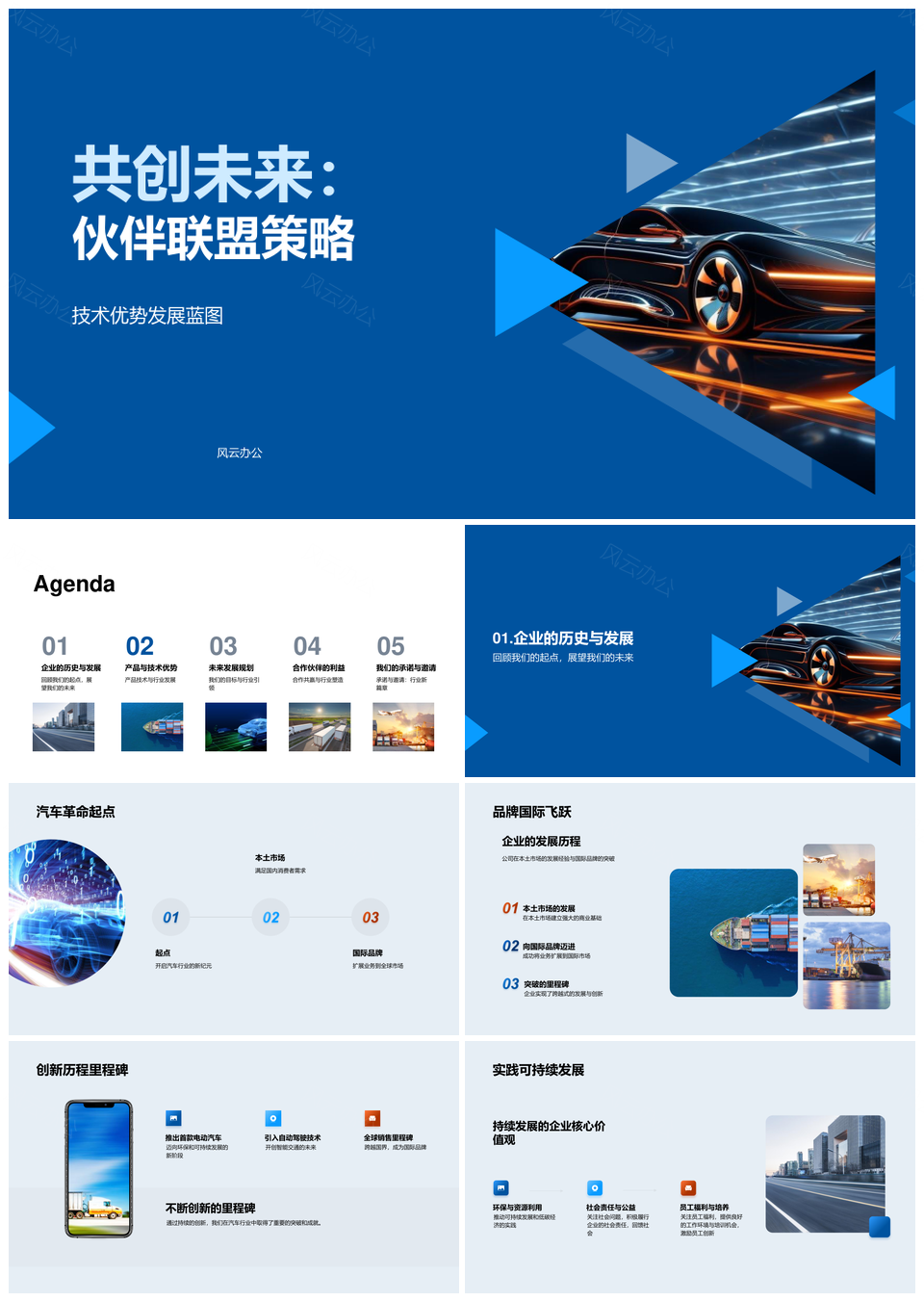 汽车企业伙伴联盟智绿技术全球蓝图PPT模板