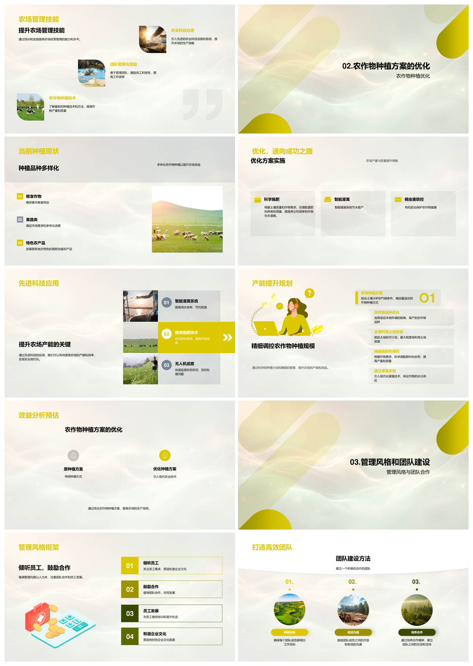 这是一张2025农场经营科技增效生态旅游特色产品管理述职PPT模板,包含2025、农场、经营、科技、增效、生态、旅游、特色产品、管理、述职等主题内容,也可用作2025农场经营科技、农场经营科技增效、科技增效生态旅游、生态旅游特色产品、特色产品管理述职、经营科技增效、科技增效生态、增效生态旅游、生态旅游特色、旅游特色产品、特色产品管理、产品管理述职、2025农场、农场经营、科技增效等PPT场景使用。 风云办公提供的2025农场经营科技增效生态旅游特色产品管理述职PPT模板,下载格式为pptx,一共33页,作品中文字及图均可以修改和编辑,图片更改请在作品中右键图片并更换,文字修改请直接点击文字进行修改。