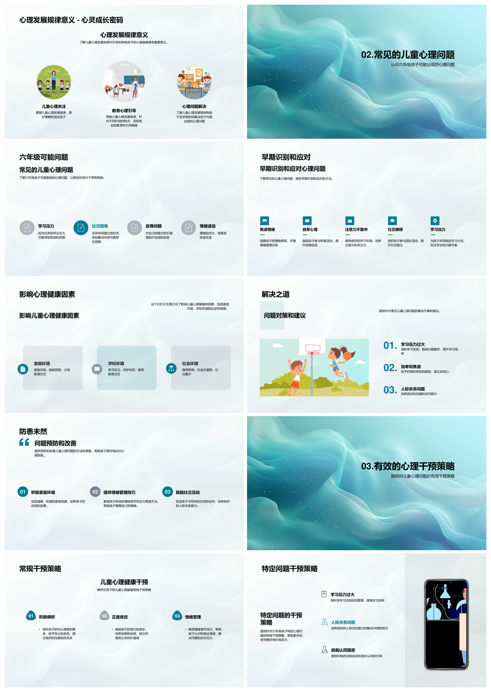 风云办公提供的六年级儿童心理发展问题干预教育策略PPT模板,下载格式为pptx,一共33页,作品中文字及图均可以修改和编辑,图片更改请在作品中右键图片并更换,文字修改请直接点击文字进行修改。