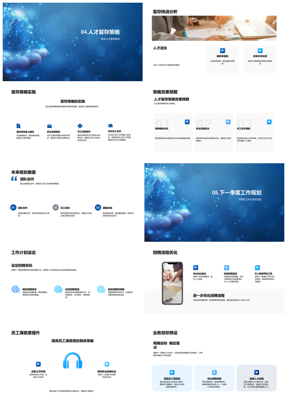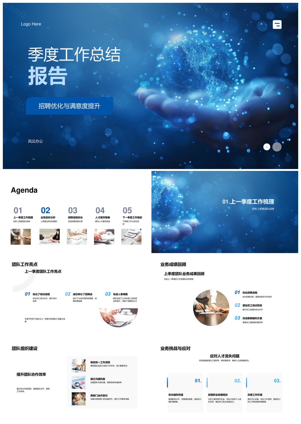 风云办公提供的季度人才招聘优化留存与团队建设总结PPT模板,下载格式为pptx,一共28页,作品中文字及图均可以修改和编辑,图片更改请在作品中右键图片并更换,文字修改请直接点击文字进行修改。
