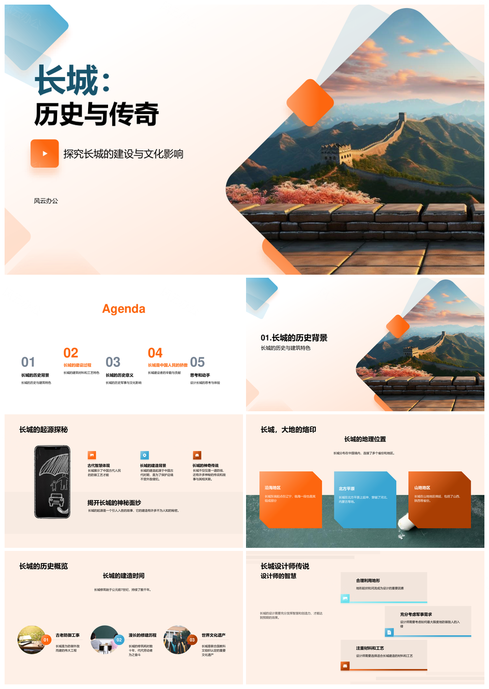 这是一张长城历史建设起源地理设计材料文化影响PPT模板,包含长城、历史、建设、起源、地理、设计、材料、文化、影响等主题内容,也可用作长城历史建设起源、历史建设起源地理、建设起源地理设计、起源地理设计材料、地理设计材料文化、设计材料文化影响、长城建设地理材料、历史起源设计文化、建设地理材料影响、起源设计文化影响、长城历史、建设起源、地理设计、材料文化、文化影响等PPT场景使用。 风云办公提供的长城历史建设起源地理设计材料文化影响PPT模板,下载格式为pptx,一共33页,作品中文字及图均可以修改和编辑,图片更改请在作品中右键图片并更换,文字修改请直接点击文字进行修改。