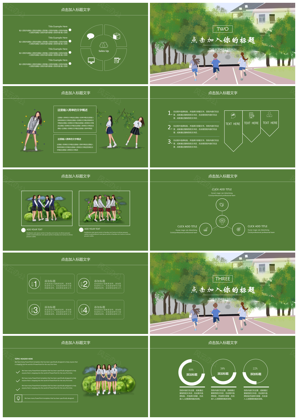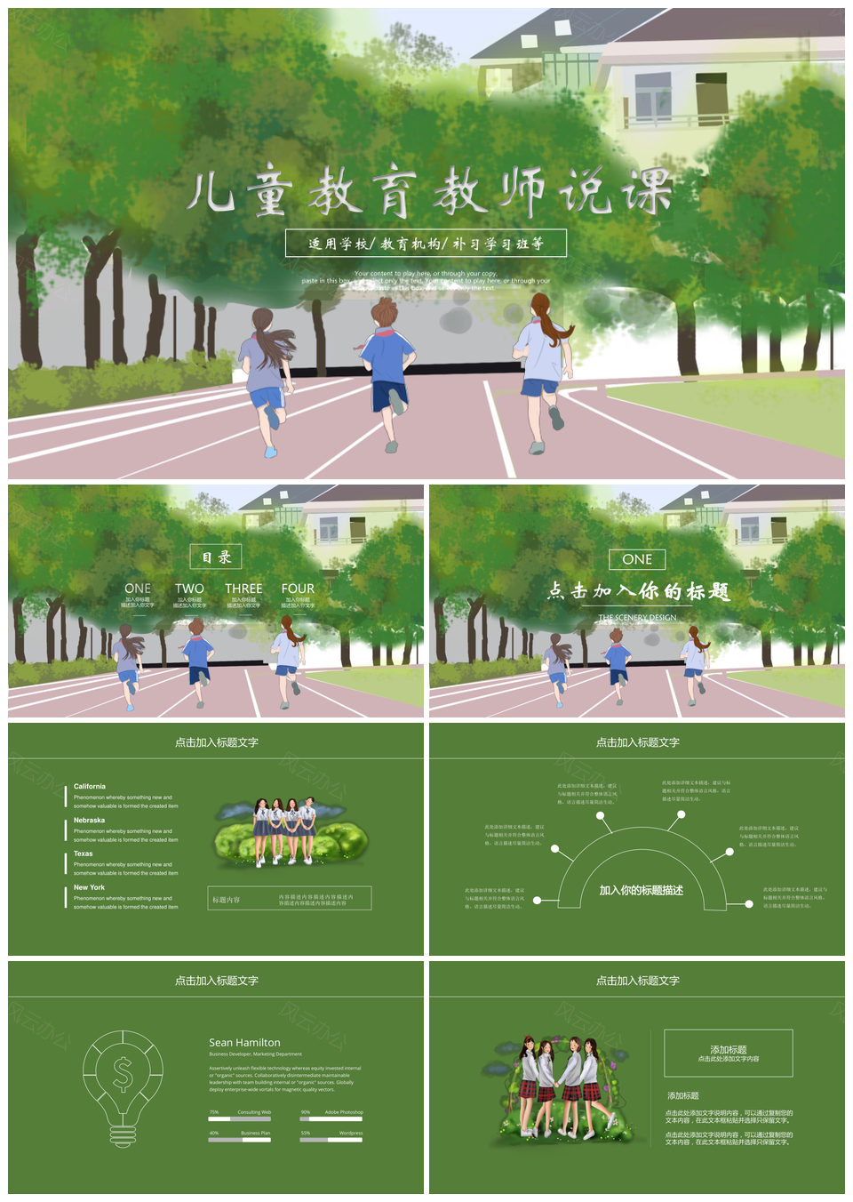 绿色清新简约可爱儿童教师说课教育教学动态PPT模板