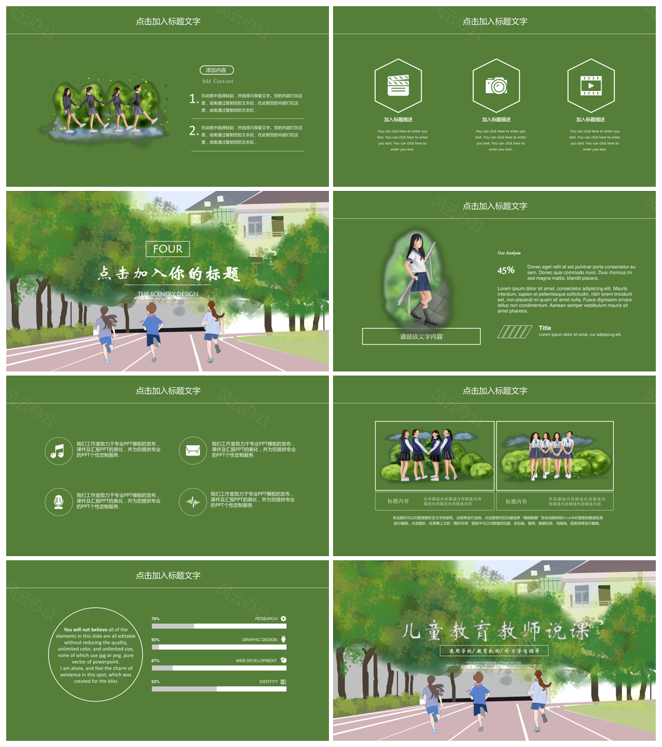 绿色儿童教师说课宣传教育课件演讲动态PPT模板