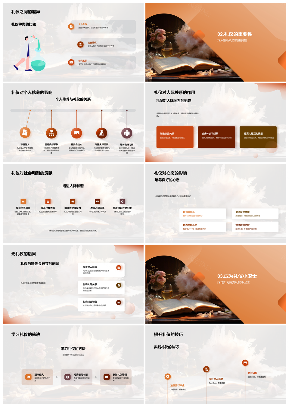 这是一张优雅礼仪使者实践生活个人社交公共礼仪PPT模板,包含优雅、礼仪、使者、实践、生活、个人、社交、公共等主题内容,也可用作优雅礼仪使者实践、优雅礼仪实践生活、优雅礼仪生活个人、使者实践生活个人、生活个人社交公共、公共礼仪优雅使者、使者实践社交礼仪、优雅礼仪使者、礼仪使者实践、社交公共礼仪、公共礼仪使者、生活公共礼仪、优雅礼仪、公共礼仪、使者实践等PPT场景使用。 风云办公提供的优雅礼仪使者实践生活个人社交公共礼仪PPT模板,下载格式为pptx,一共33页,作品中文字及图均可以修改和编辑,图片更改请在作品中右键图片并更换,文字修改请直接点击文字进行修改。