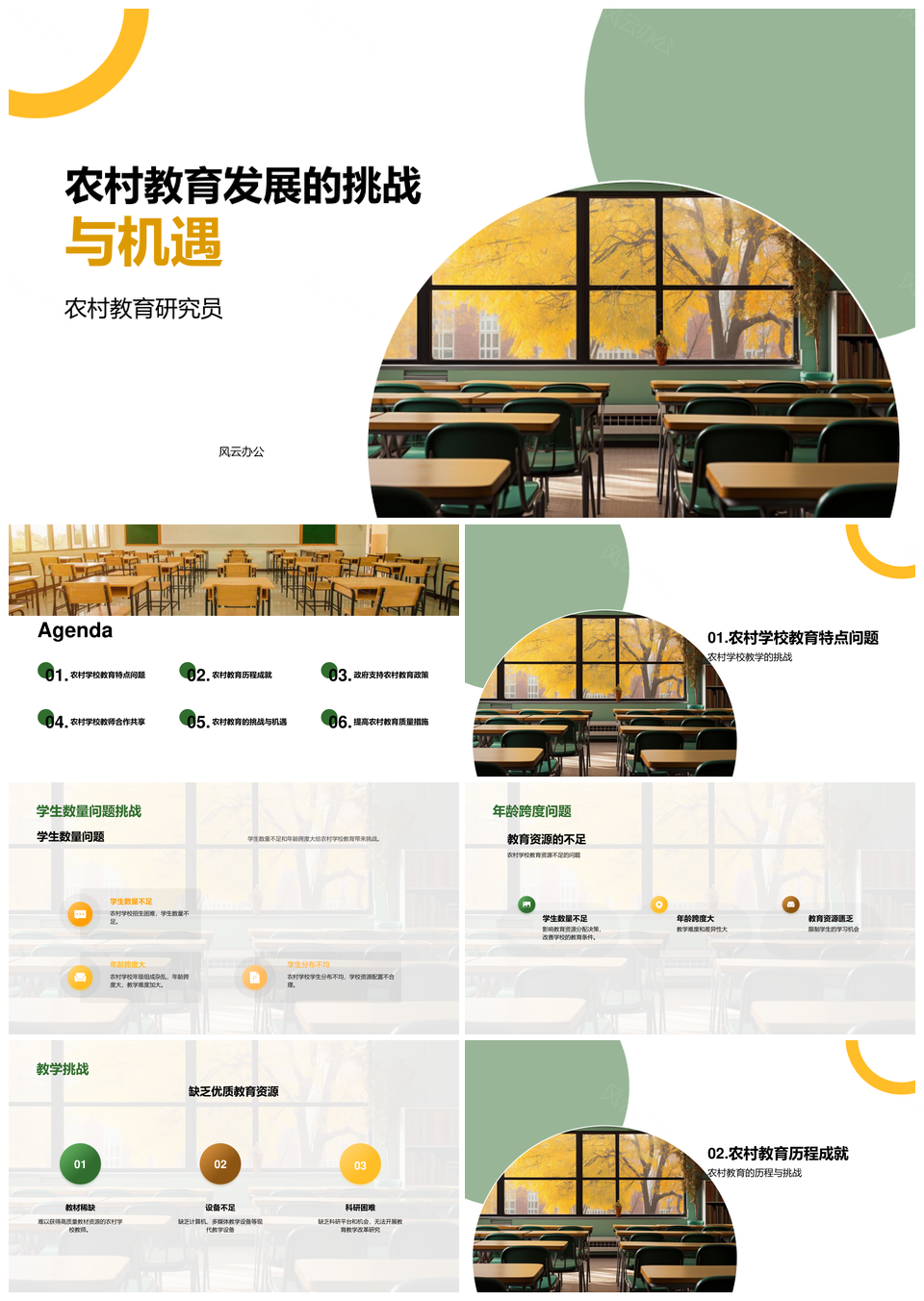 风云办公提供的农村教育发展挑战与资源机遇PPT模板,下载格式为pptx,一共27页,作品中文字及图均可以修改和编辑,图片更改请在作品中右键图片并更换,文字修改请直接点击文字进行修改。