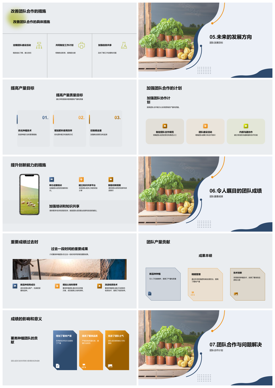 薯类种植团队总结负责人成员职责成果进展PPT模板推荐