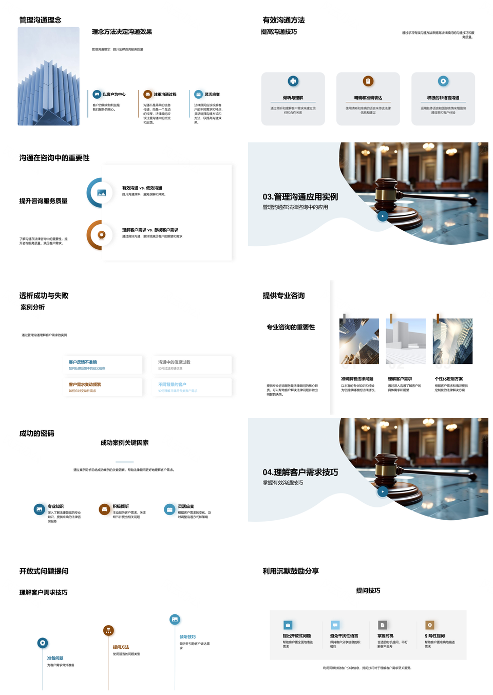 风云办公提供的法律咨询专业沟通技巧与客户需求管理PPT模板,下载格式为pptx,一共24页,作品中文字及图均可以修改和编辑,图片更改请在作品中右键图片并更换,文字修改请直接点击文字进行修改。