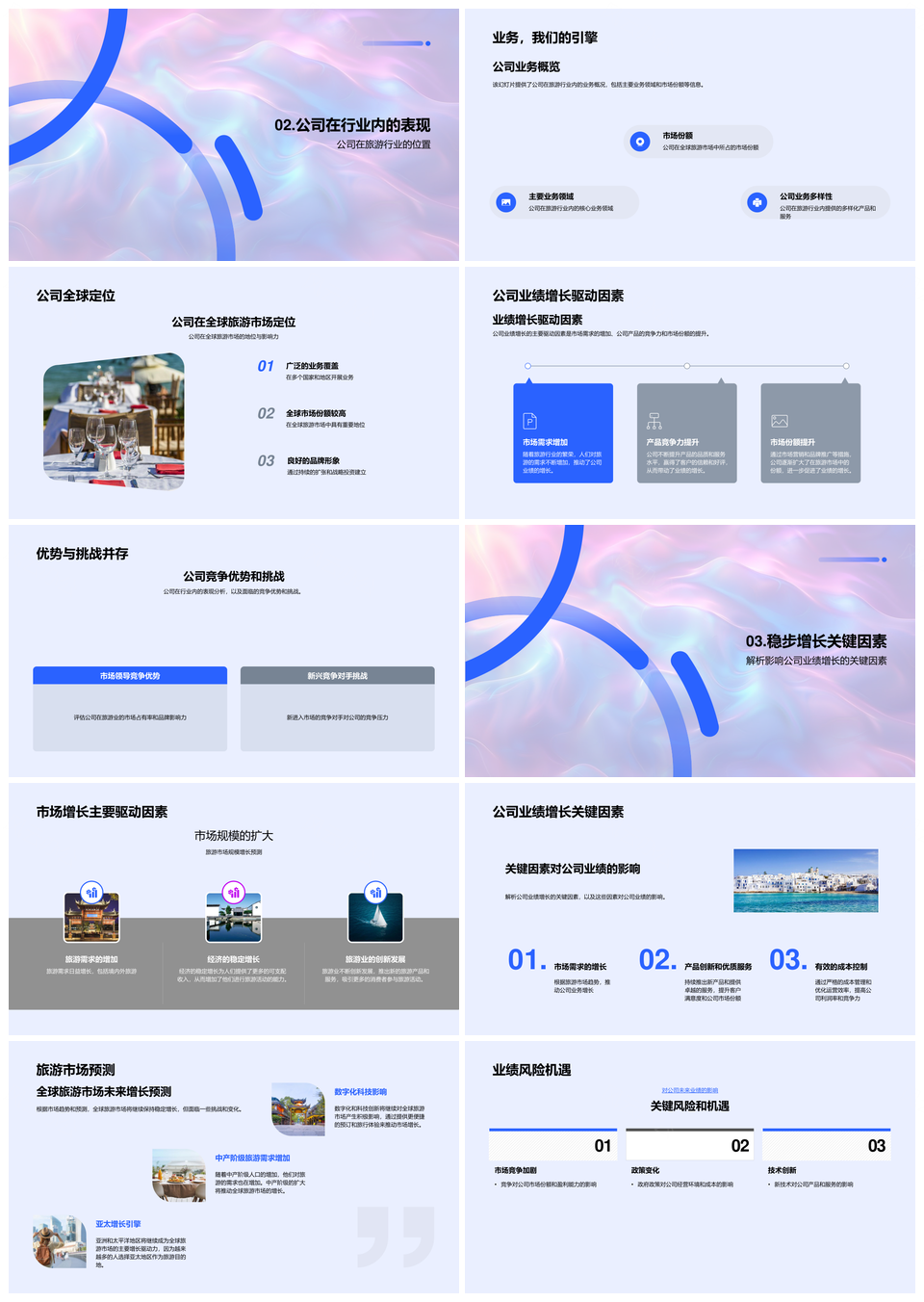 这是一张2025全球旅游业半年度趋势战略发展报告PPT模板,包含2025、全球、旅游业、半年度、趋势、战略、发展、报告等主题内容,也可用作2025全球旅游业半年度趋势、全球旅游业半年度趋势战略、旅游业半年度趋势战略发展、半年度趋势战略发展报告、趋势战略发展报告、2025全球旅游业半年度、全球旅游业战略发展、半年度战略发展报告、2025旅游业趋势战略、全球趋势战略发展、半年度战略发展、旅游业战略发展、战略发展报告、全球旅游业发展、趋势战略报告等PPT场景使用。 风云办公提供的2025全球旅游业半年度趋势战略发展报告PPT模板,下载格式为pptx,一共28页,作品中文字及图均可以修改和编辑,图片更改请在作品中右键图片并更换,文字修改请直接点击文字进行修改。