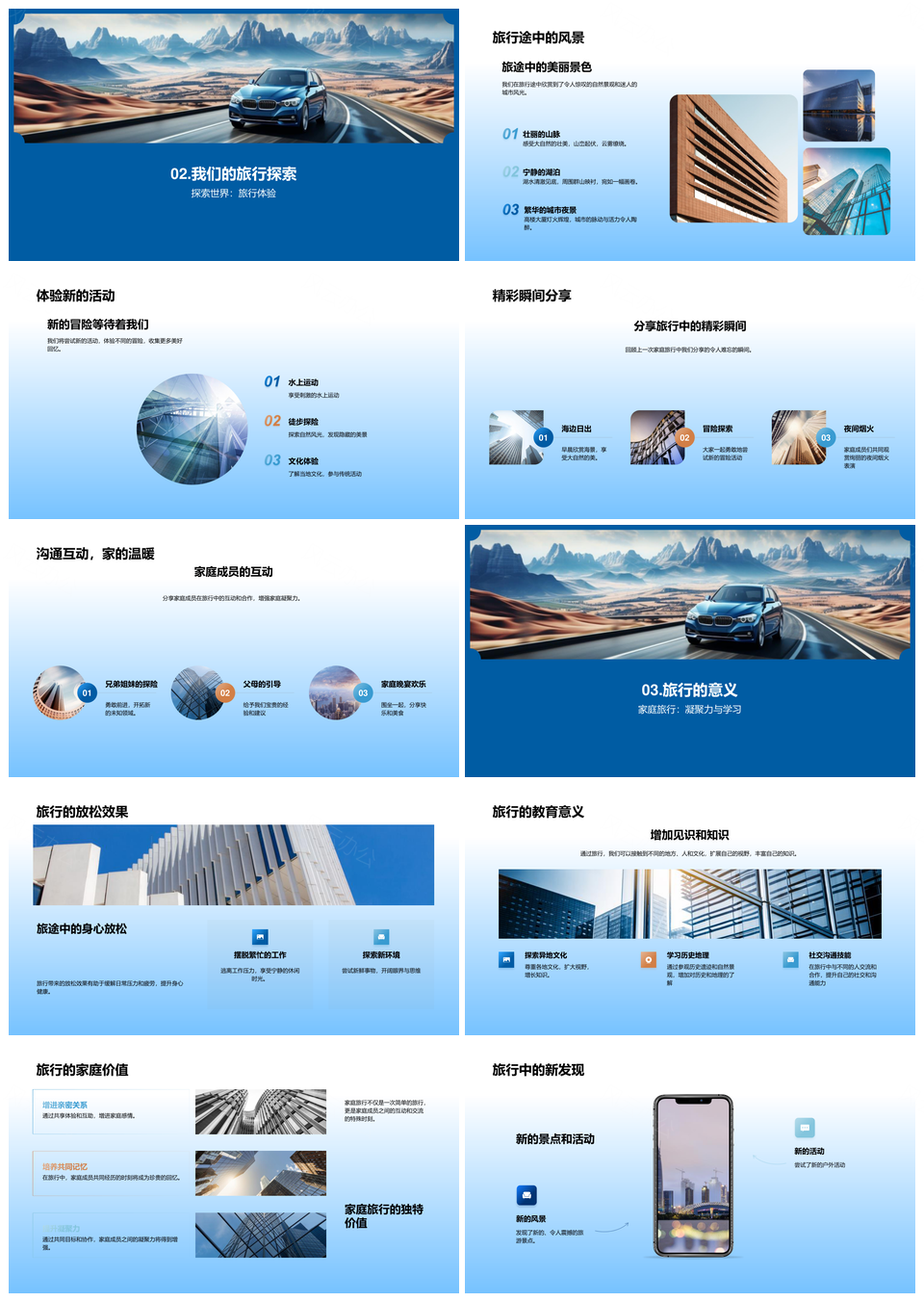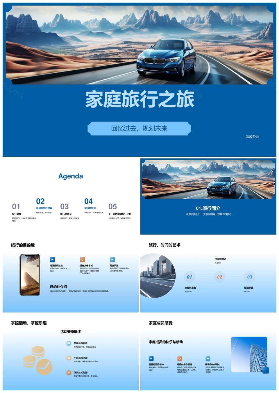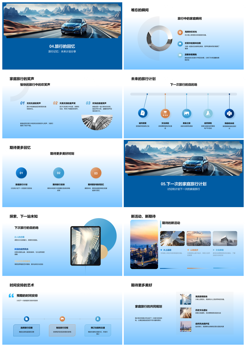 家庭汽车旅行目的地时光活动教育体验瞬间PPT模板推荐