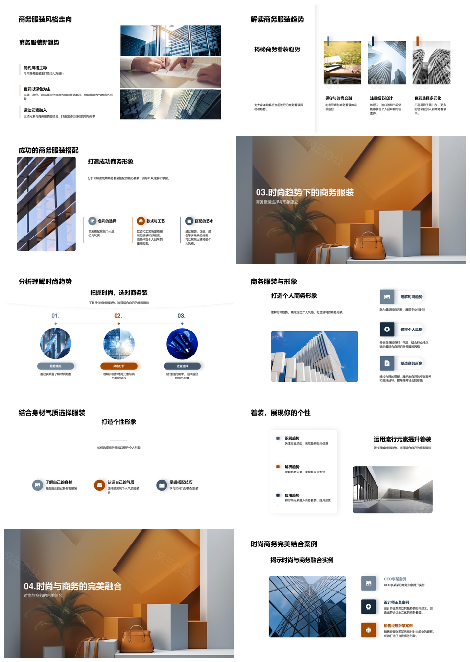 这是一张2025商务穿搭时尚元素提升商务形象礼仪PPT模板,包含2025、商务穿搭、时尚元素、提升、商务形象、礼仪等主题内容,也可用作2025商务穿搭时尚元素、商务穿搭时尚元素提升、时尚元素提升商务、提升商务形象礼仪、商务穿搭时尚元素、2025商务穿搭、穿搭时尚元素提升、商务形象礼仪提升、2025商务、商务穿搭、时尚元素提升、提升商务、商务形象礼仪、时尚元素礼仪、穿搭时尚元素等PPT场景使用。 风云办公提供的2025商务穿搭时尚元素提升商务形象礼仪PPT模板,下载格式为pptx,一共24页,作品中文字及图均可以修改和编辑,图片更改请在作品中右键图片并更换,文字修改请直接点击文字进行修改。