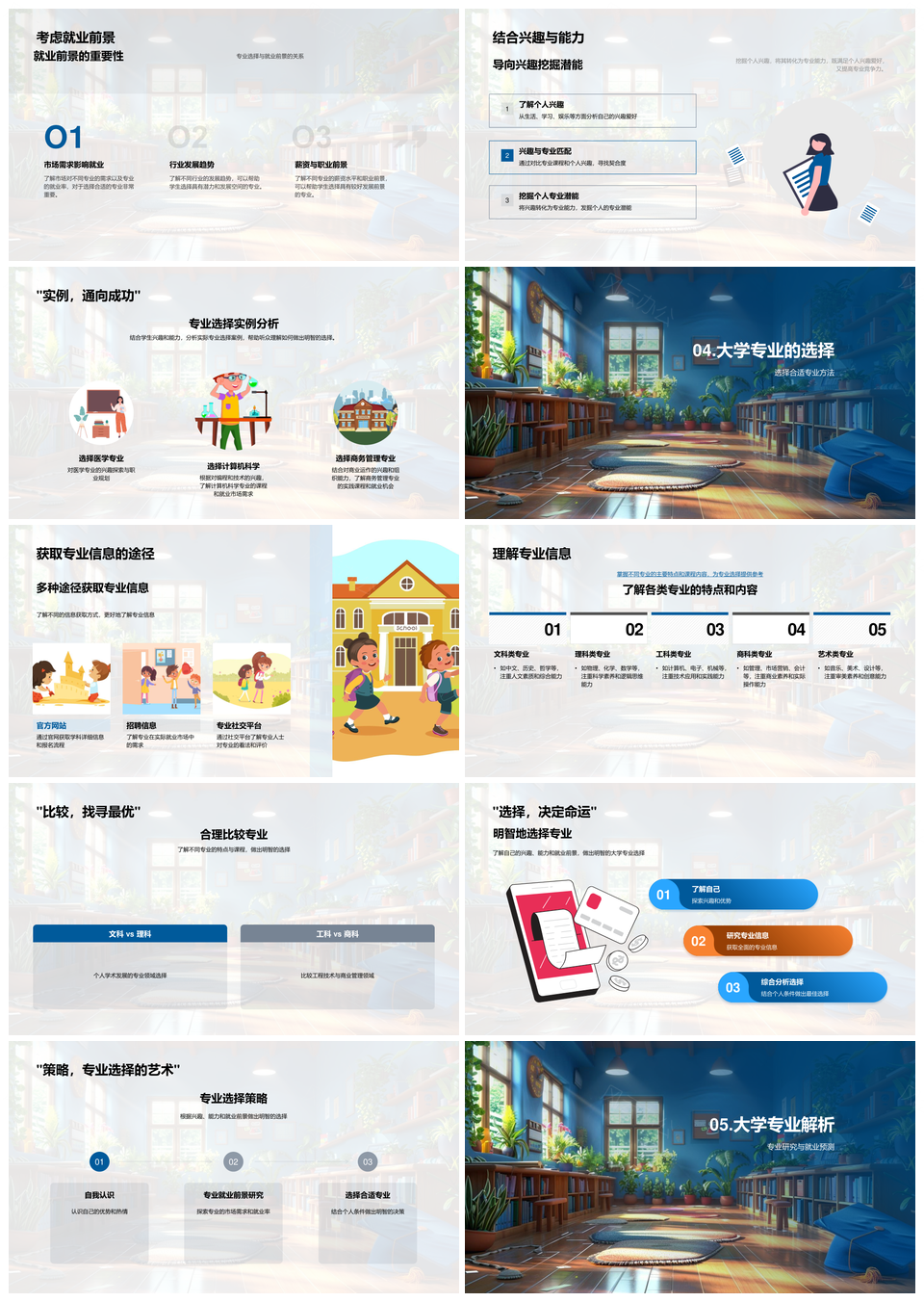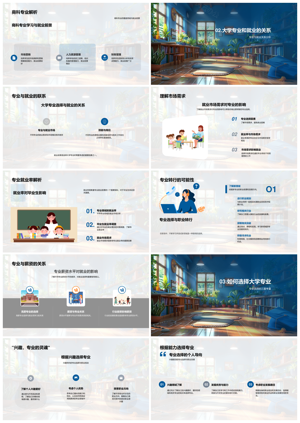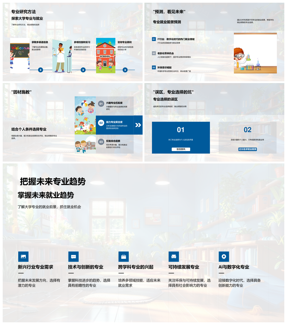 风云办公提供的大学专业文理工商就业选择与前景指导PPT模板,下载格式为pptx,一共33页,作品中文字及图均可以修改和编辑,图片更改请在作品中右键图片并更换,文字修改请直接点击文字进行修改。