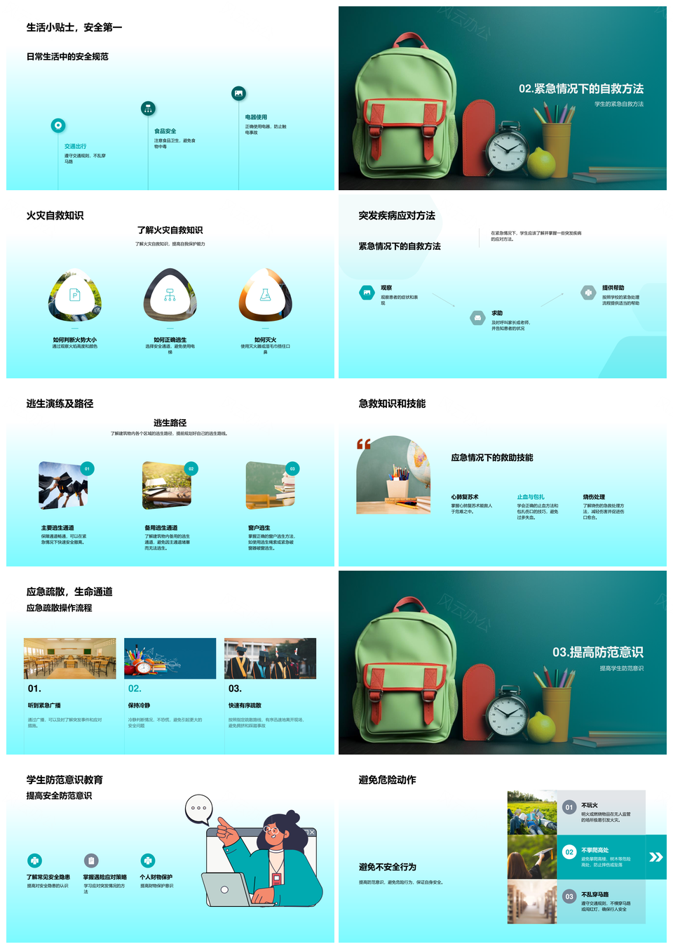 风云办公提供的学生安全防范自救能力提升PPT模板,下载格式为pptx,一共33页,作品中文字及图均可以修改和编辑,图片更改请在作品中右键图片并更换,文字修改请直接点击文字进行修改。