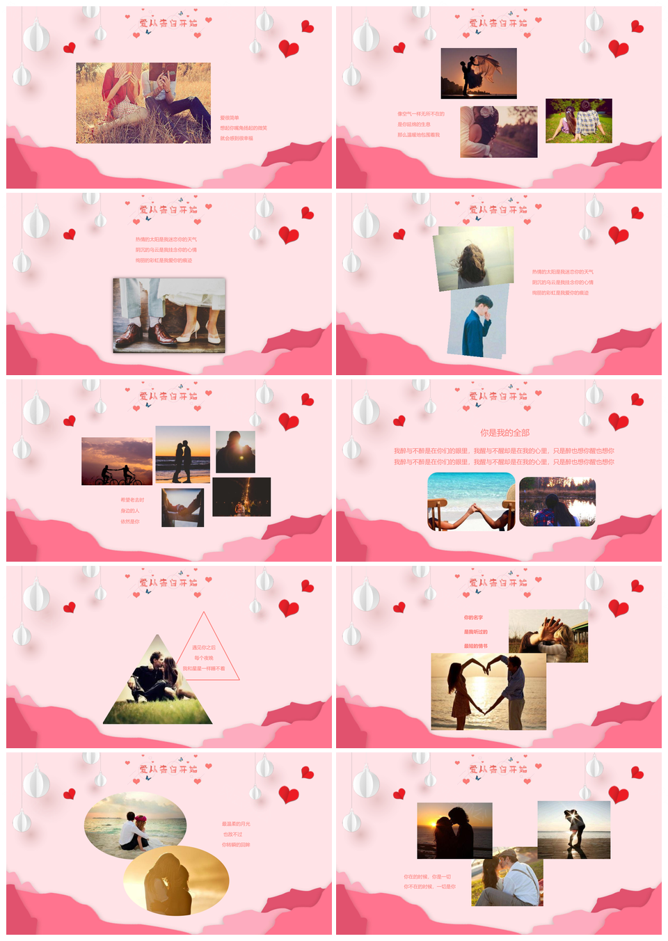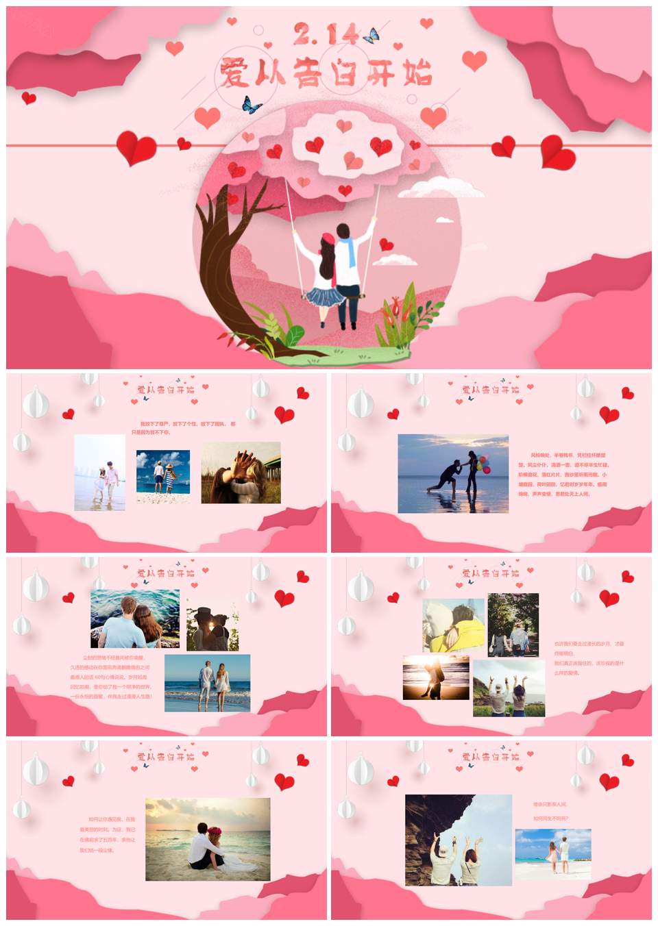 粉色浪漫唯美爱情情人节情侣表白相册PPT模板