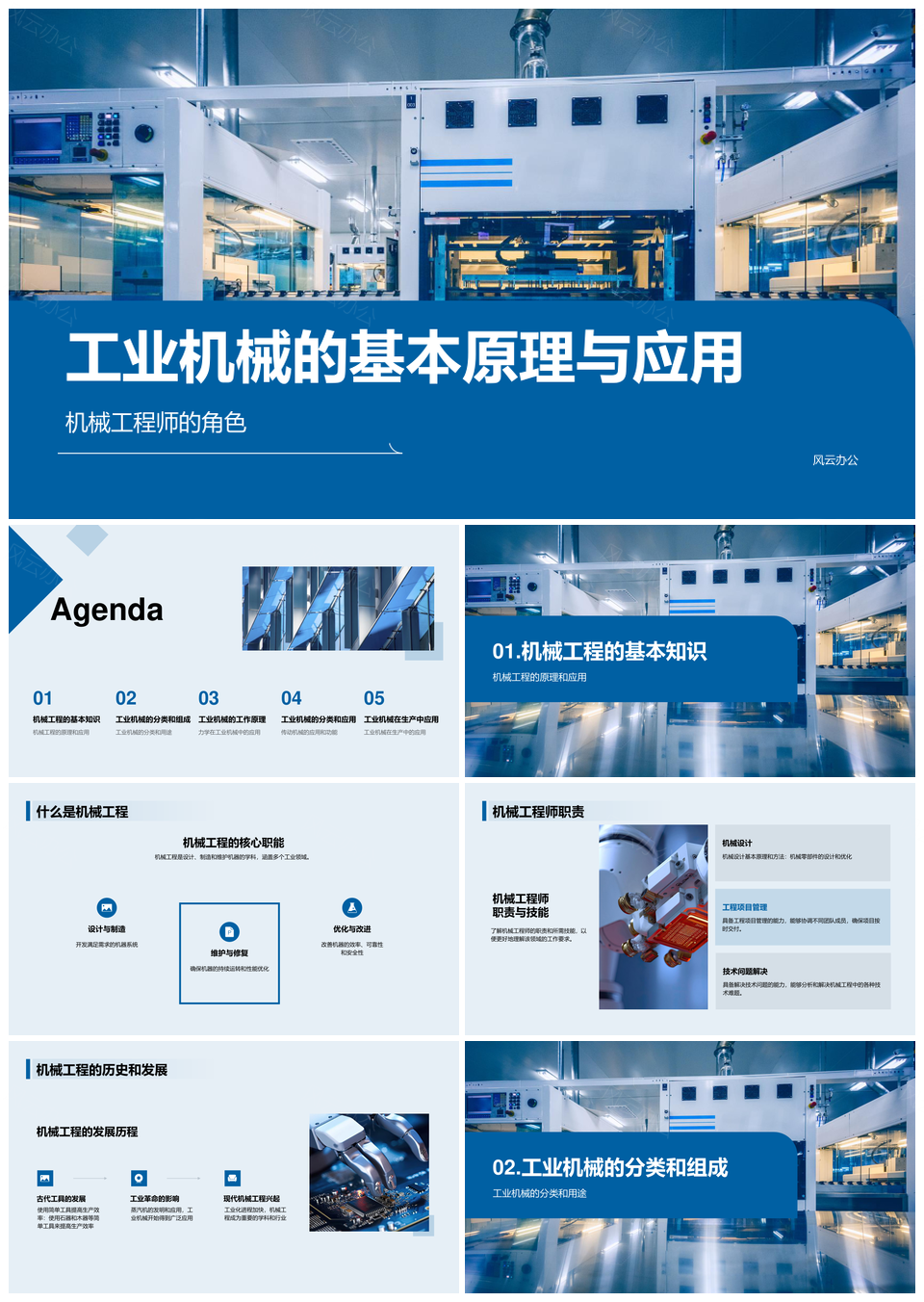 风云办公提供的蓝色商务现代简约工业机械制造培训课件,下载格式为pptx,一共24页,作品中文字及图均可以修改和编辑,图片更改请在作品中右键图片并更换,文字修改请直接点击文字进行修改。