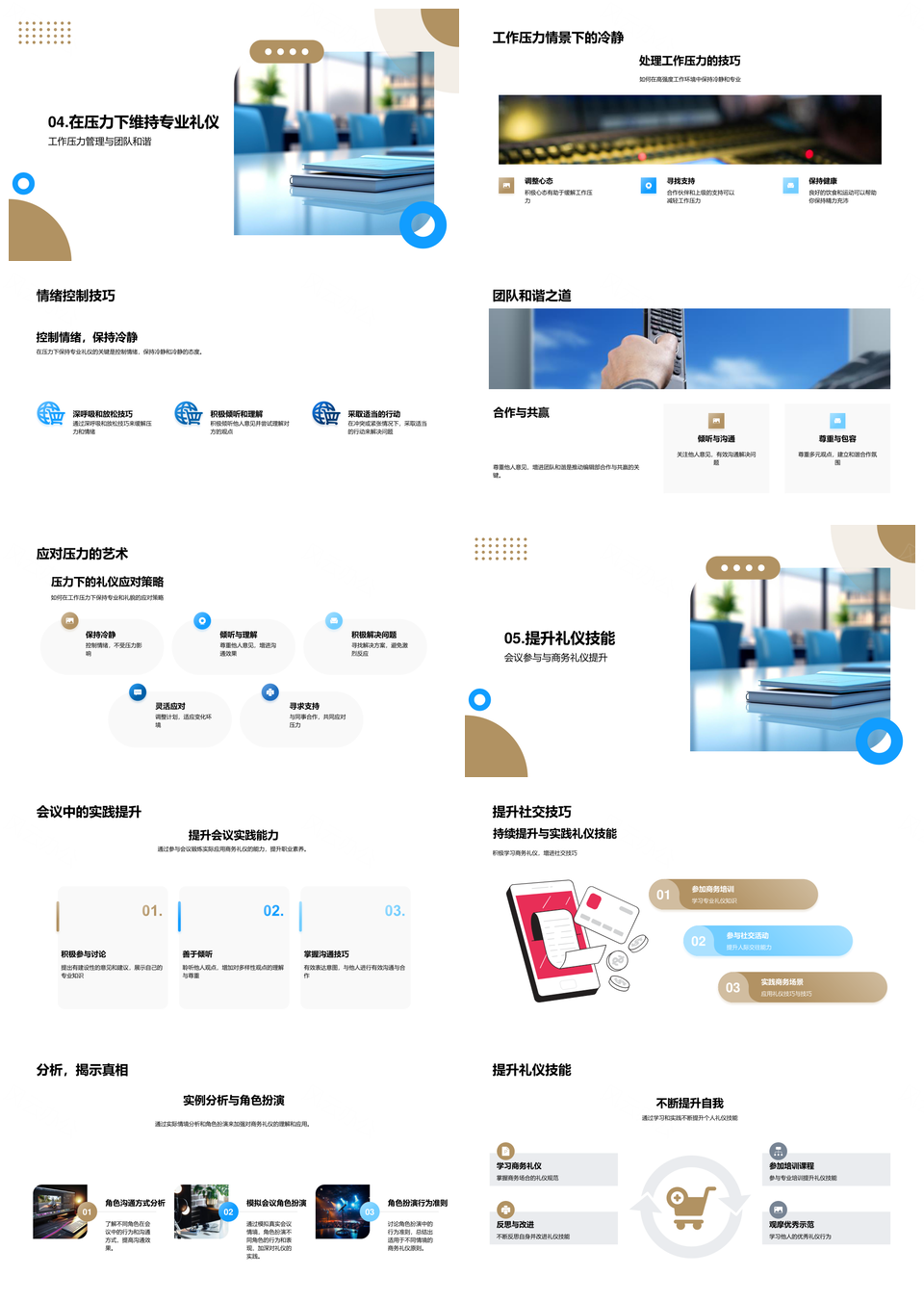 风云办公提供的编辑部商务礼仪训练师会议桌解析PPT模板,下载格式为pptx,一共28页,作品中文字及图均可以修改和编辑,图片更改请在作品中右键图片并更换,文字修改请直接点击文字进行修改。