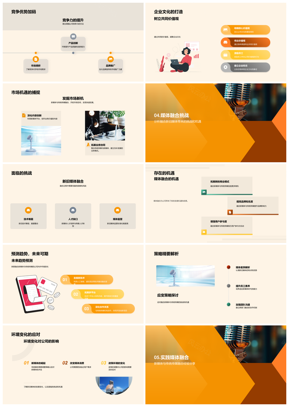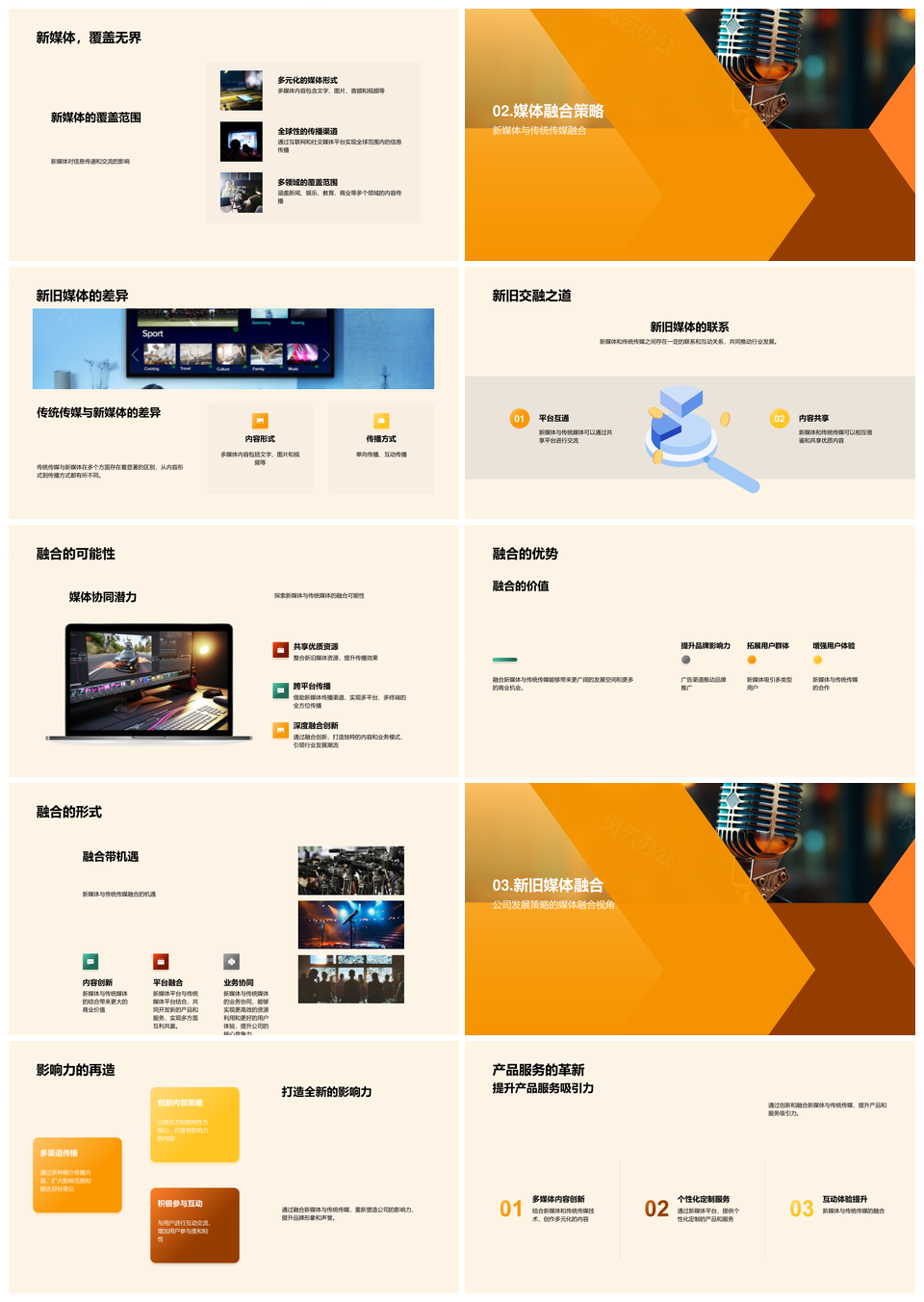 这是一张新媒体融合下传统传媒发展策略与创新路径PPT模板,包含新媒体融合、传统传媒、发展策略、创新路径等主题内容,也可用作新媒体融合传统传媒发展策略创新路径、新媒体融合传统传媒发展策略、新媒体融合传统传媒创新路径、传统传媒发展策略创新路径、新媒体融合发展策略创新路径、新媒体融合传统传媒发展、融合传统传媒发展策略创新路径、传统传媒发展策略创新、新媒体融合创新发展路径、融合传统传媒发展策略、新媒体发展策略创新路径、传统传媒创新发展路径、新媒体融合传统传媒创新、传统传媒创新路径发展、融合发展策略创新路径等PPT场景使用。 风云办公提供的新媒体融合下传统传媒发展策略与创新路径PPT模板,下载格式为pptx,一共33页,作品中文字及图均可以修改和编辑,图片更改请在作品中右键图片并更换,文字修改请直接点击文字进行修改。