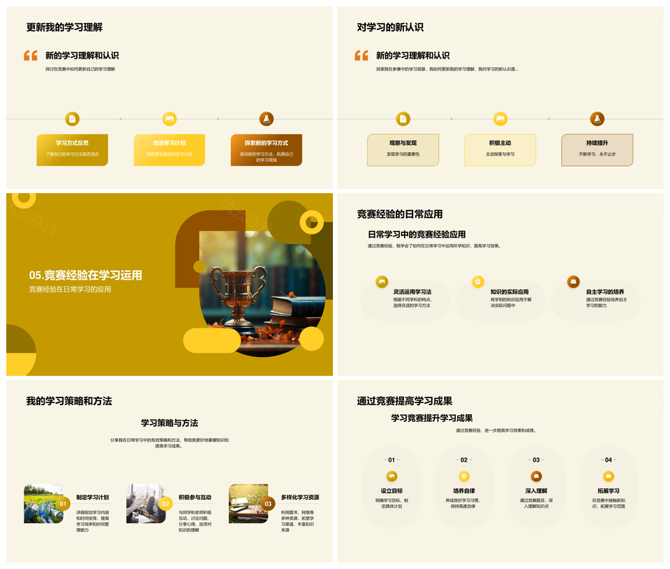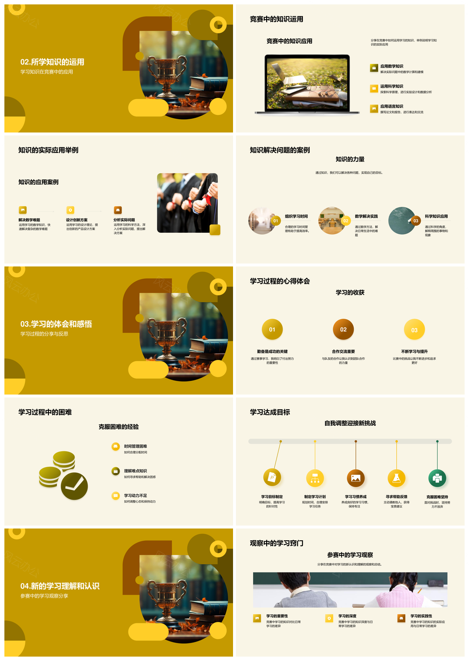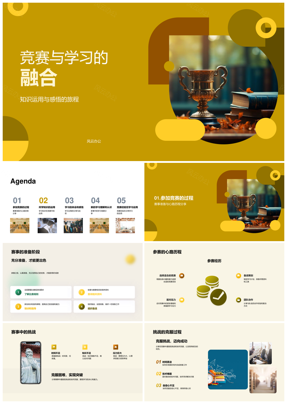 竞赛学习融合知识运用与赛事奖杯PPT模板推荐