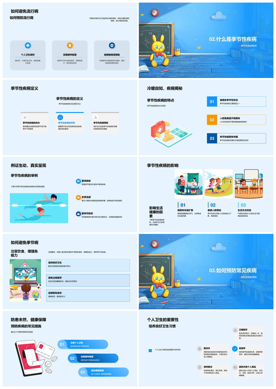 这是一张季节流行疾病预防疫苗接种与健康卫生教育措施PPT模板,包含季节、流行病、预防、疫苗接种、健康卫生、教育、措施等主题内容,也可用作季节流行疾病预防疫苗接种、流行疾病预防疫苗接种、健康卫生教育措施、季节流行疾病预防、预防疫苗接种措施、流行疾病疫苗接种、健康卫生教育、疫苗接种措施、季节预防措施、流行疾病预防、预防疫苗接种、疫苗接种健康卫生教育、季节健康卫生教育、健康卫生教育预防、流行疾病预防措施等PPT场景使用。 风云办公提供的季节流行疾病预防疫苗接种与健康卫生教育措施PPT模板,下载格式为pptx,一共33页,作品中文字及图均可以修改和编辑,图片更改请在作品中右键图片并更换,文字修改请直接点击文字进行修改。