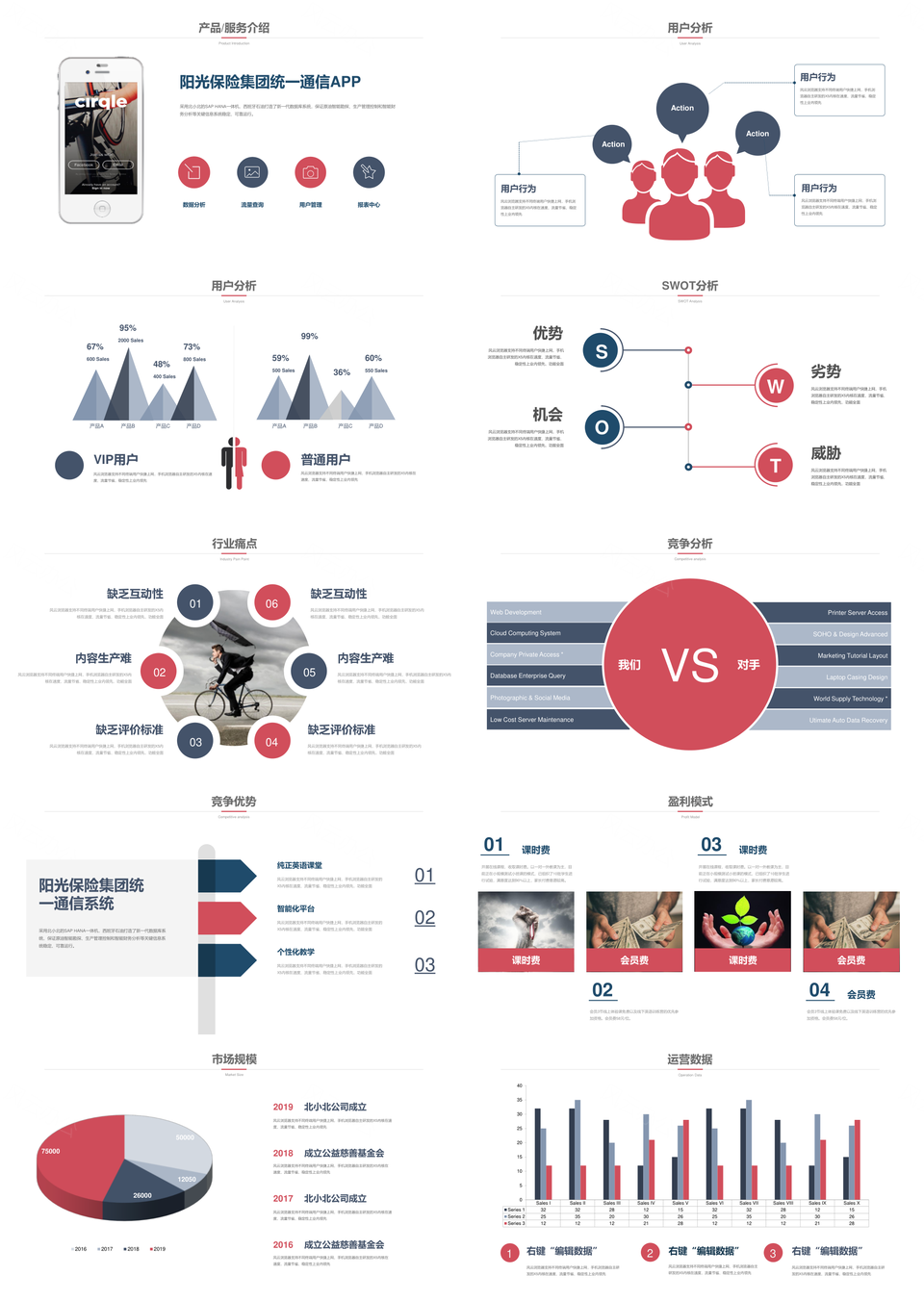 红色商务风完整框架移动互联网商业计划书PPT模板