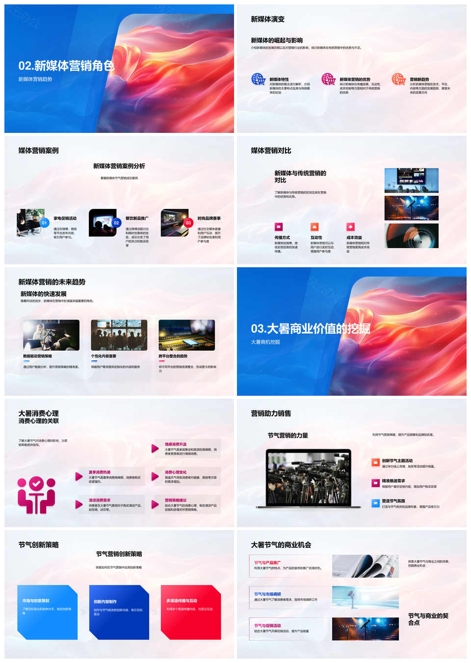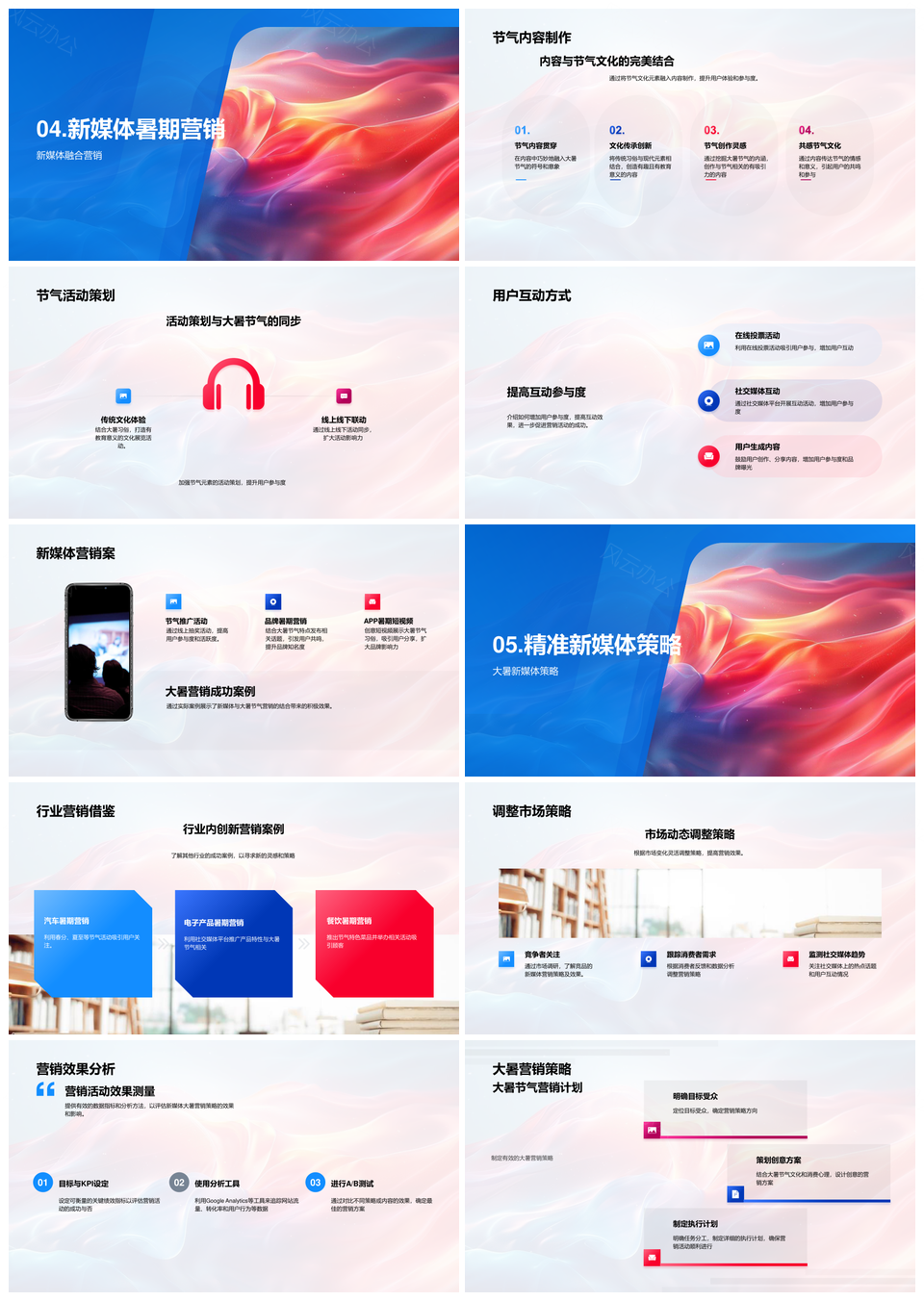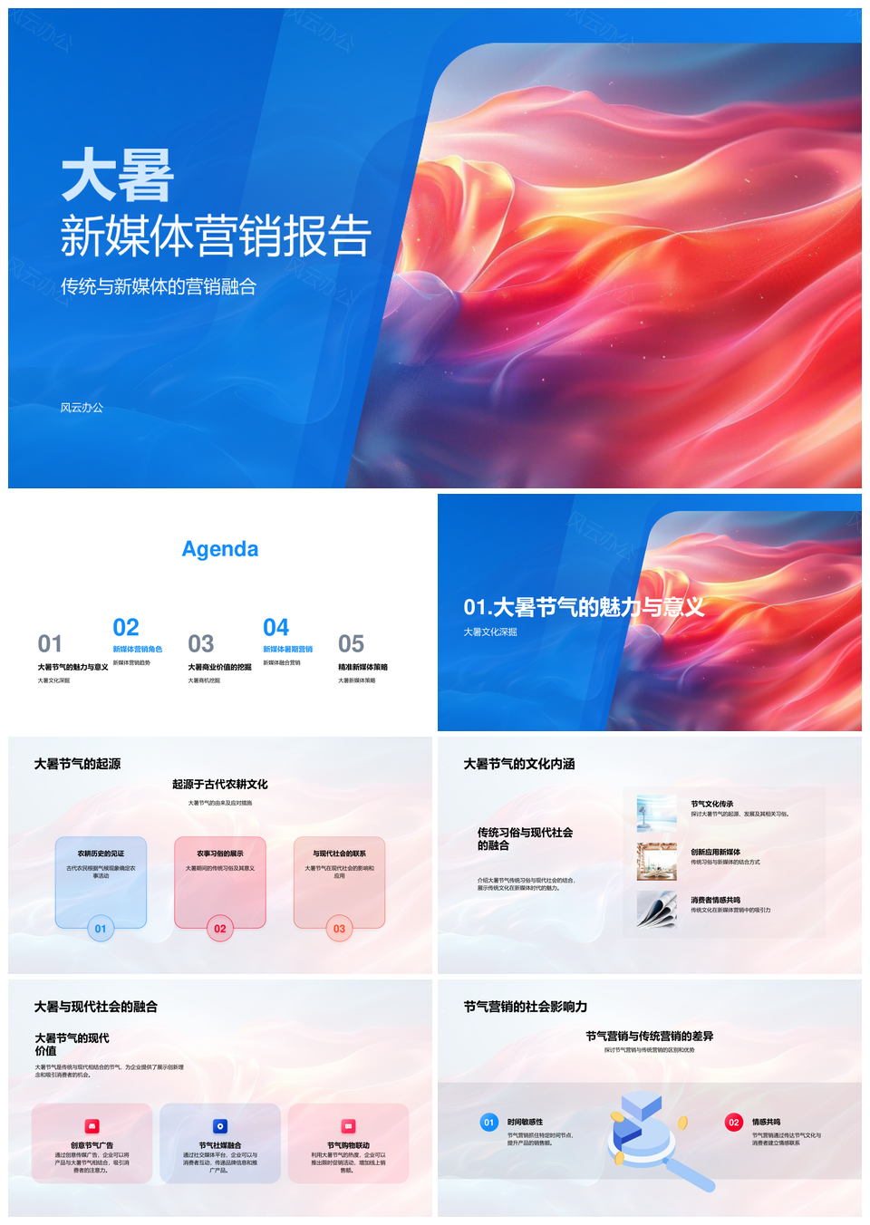 风云办公提供的大暑节气新媒体营销运营报告PPT模板,下载格式为pptx,一共28页,作品中文字及图均可以修改和编辑,图片更改请在作品中右键图片并更换,文字修改请直接点击文字进行修改。
