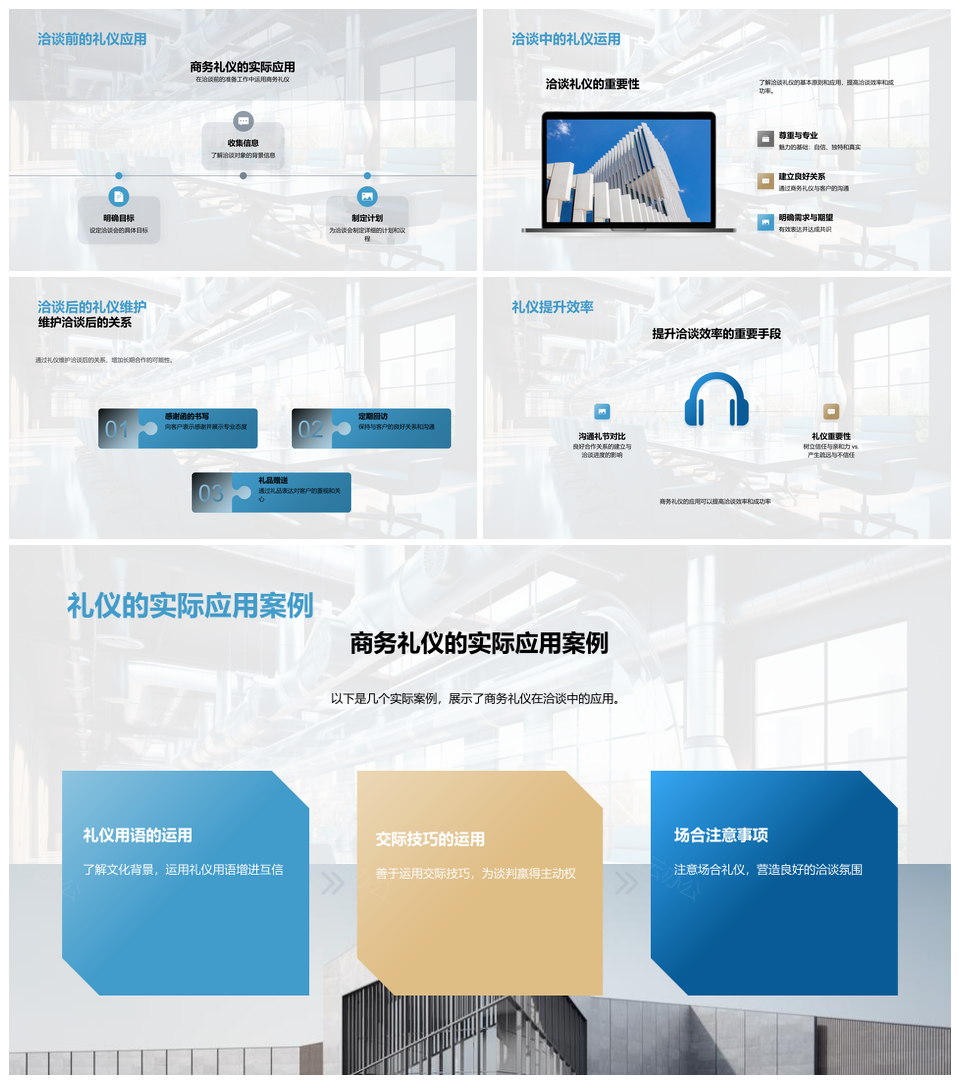 这是一张工业机械商务洽谈礼仪高效沟通培训PPT模板,包含工业、机械、商务、洽谈、礼仪、高效、沟通、培训等主题内容,也可用作工业机械商务洽谈礼仪高效沟通、商务洽谈礼仪高效沟通培训、工业机械商务洽谈礼仪、工业机械商务洽谈高效沟通、工业机械商务洽谈培训、商务洽谈礼仪高效沟通、商务洽谈礼仪培训、商务洽谈高效沟通培训、礼仪高效沟通培训、工业机械商务洽谈、商务洽谈礼仪、商务洽谈高效沟通、商务洽谈培训、礼仪高效沟通、高效沟通培训等PPT场景使用。