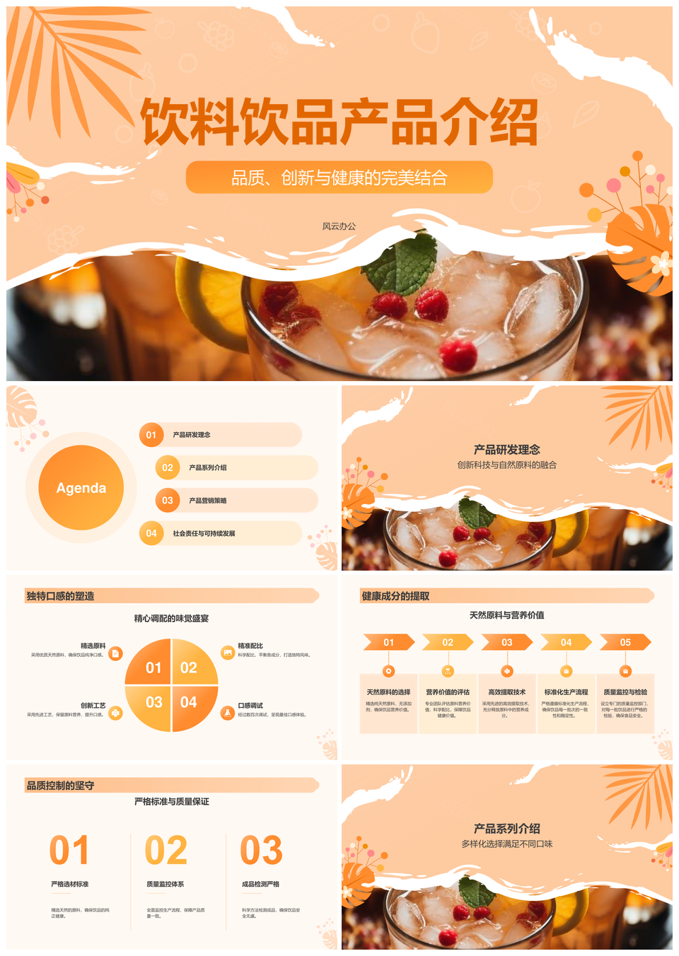 风云办公提供的健康浓醇创新科技乐享生活饮品PPT模板,下载格式为pptx,一共20页,作品中文字及图均可以修改和编辑,图片更改请在作品中右键图片并更换,文字修改请直接点击文字进行修改。