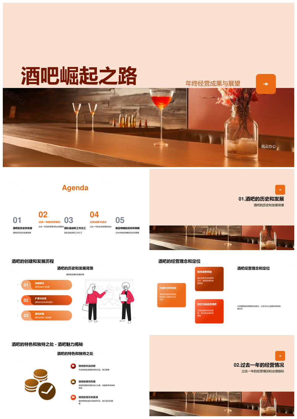 风云办公提供的酒吧经理团队服务业绩年终总结PPT模板,下载格式为pptx,一共23页,作品中文字及图均可以修改和编辑,图片更改请在作品中右键图片并更换,文字修改请直接点击文字进行修改。