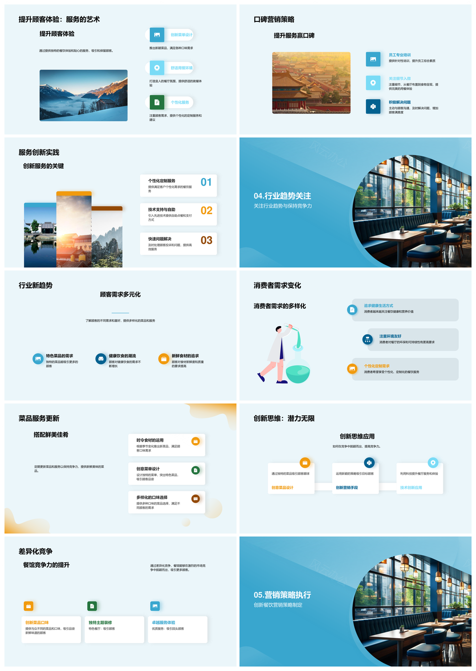风云办公提供的特色餐饮差异化优势赢消费趋势PPT模板,下载格式为pptx,一共33页,作品中文字及图均可以修改和编辑,图片更改请在作品中右键图片并更换,文字修改请直接点击文字进行修改。
