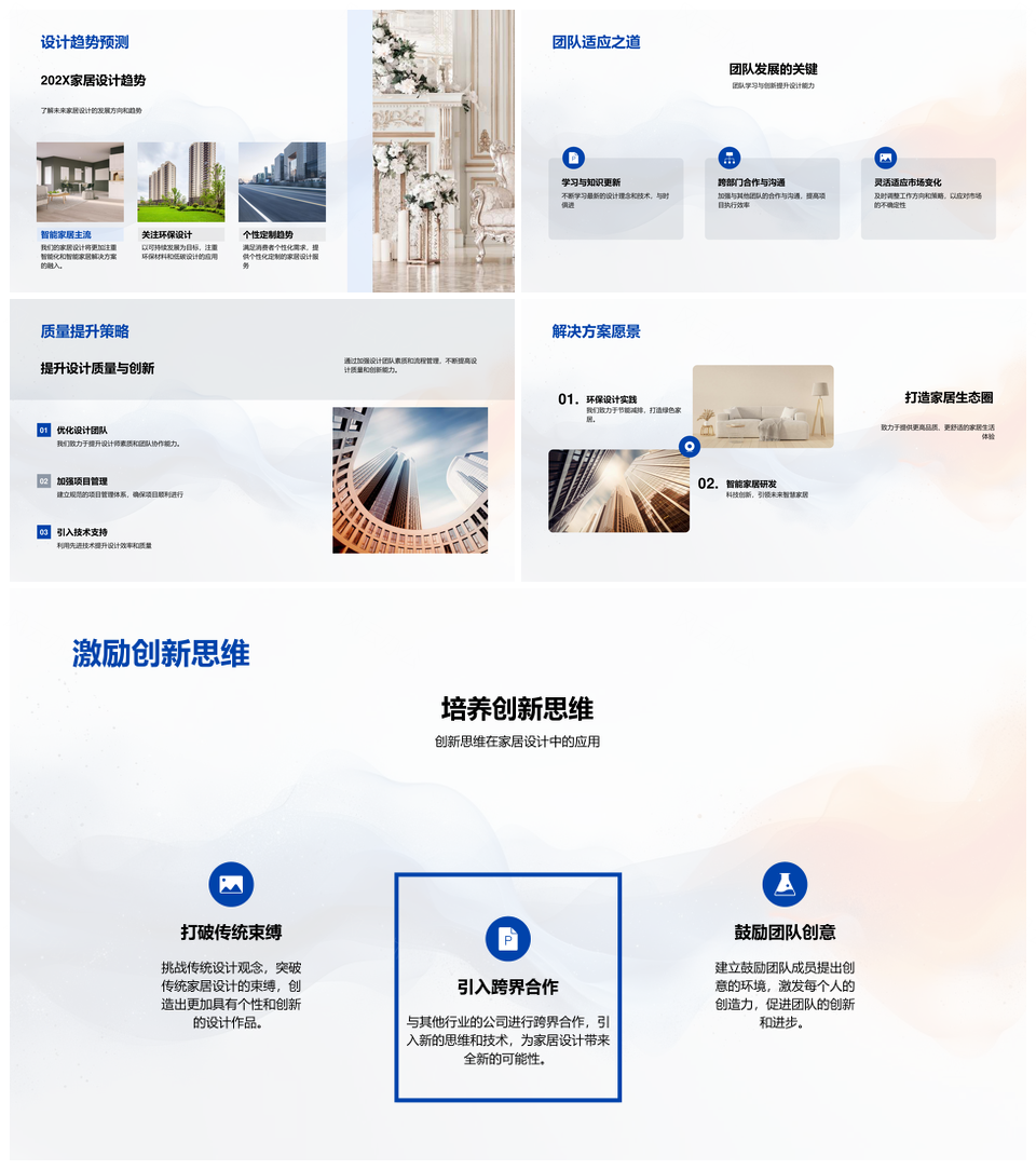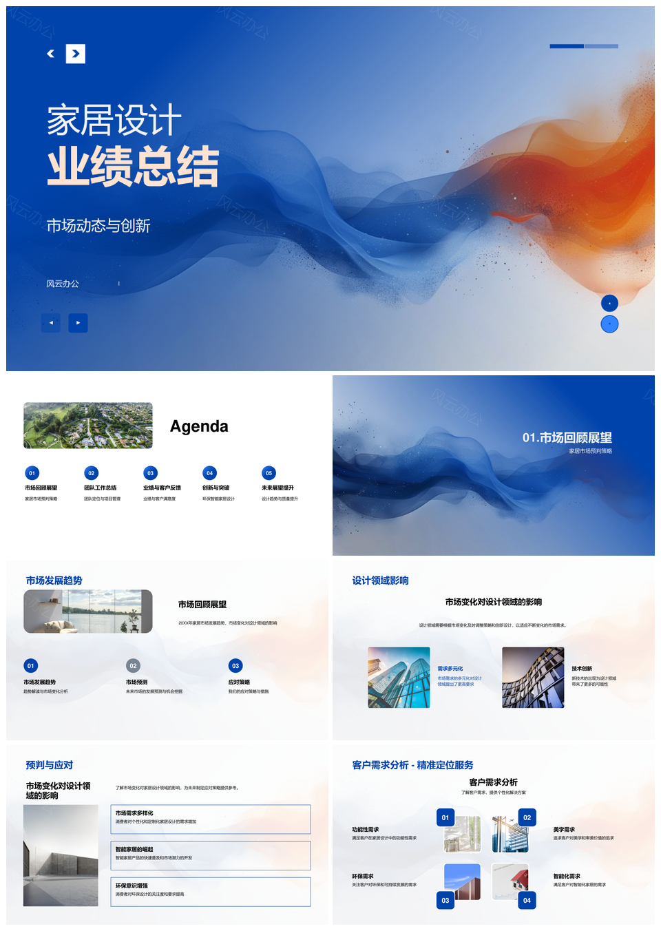 这是一张家居市场趋势创新设计预判应对项目业绩总结PPT模板,包含家居市场、趋势、创新设计、预判、应对、项目、业绩、总结等主题内容,也可用作家居市场趋势创新、家居市场创新设计、市场趋势创新设计、趋势创新设计预判、创新设计预判应对、设计预判应对项目、预判应对项目业绩、应对项目业绩总结、家居市场趋势、家居市场创新、市场趋势创新、趋势创新设计、创新设计预判、设计预判应对、预判应对项目等PPT场景使用。 风云办公提供的家居市场趋势创新设计预判应对项目业绩总结PPT模板,下载格式为pptx,一共33页,作品中文字及图均可以修改和编辑,图片更改请在作品中右键图片并更换,文字修改请直接点击文字进行修改。