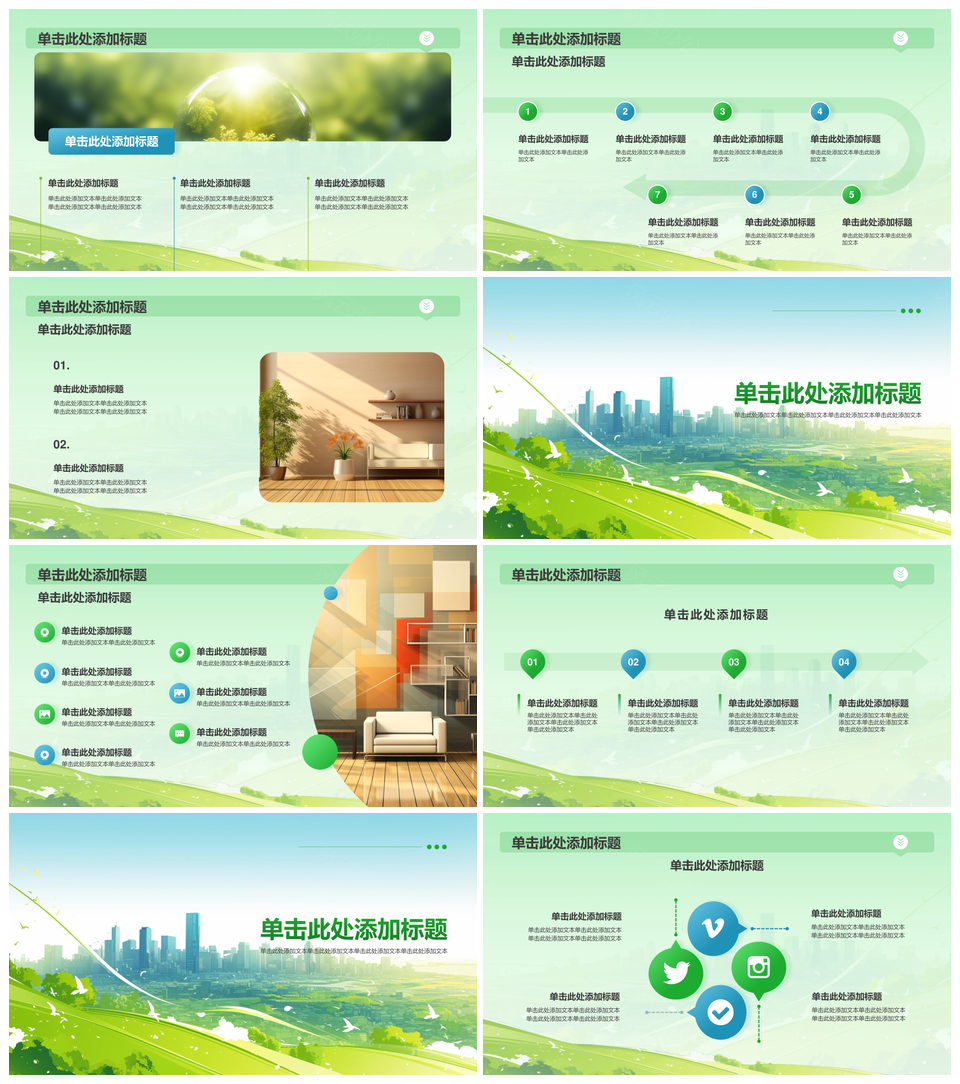 白色主调搭配浅绿,墨绿,草绿点缀,打造理性与生机并存的专业表达空间,简洁线条勾勒出清晰层次,扁平化的几何图形与模块化排版支持快速数据呈现,适配商务汇报,策划提案,学术交流等多种场景。森系色阶经过严格视觉调试,既保留原木质感又提升屏幕可视性,内置20+可修改图示组件均采用矢量格式,文字字号,图形比例经过三端适配优化,保障多设备浏览一致性。简约架构下隐藏灵活布局,通过母版拖拽即可实现段落重组,满足60分钟内完成方案制作的高效需求。