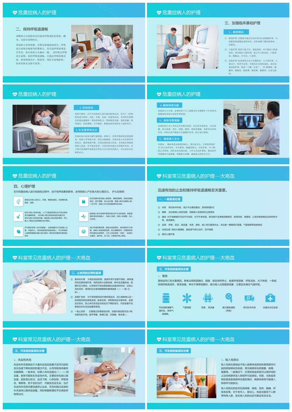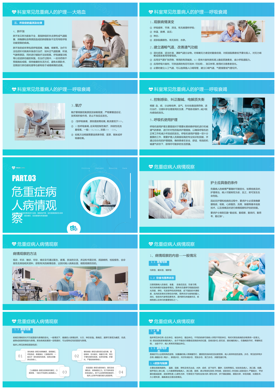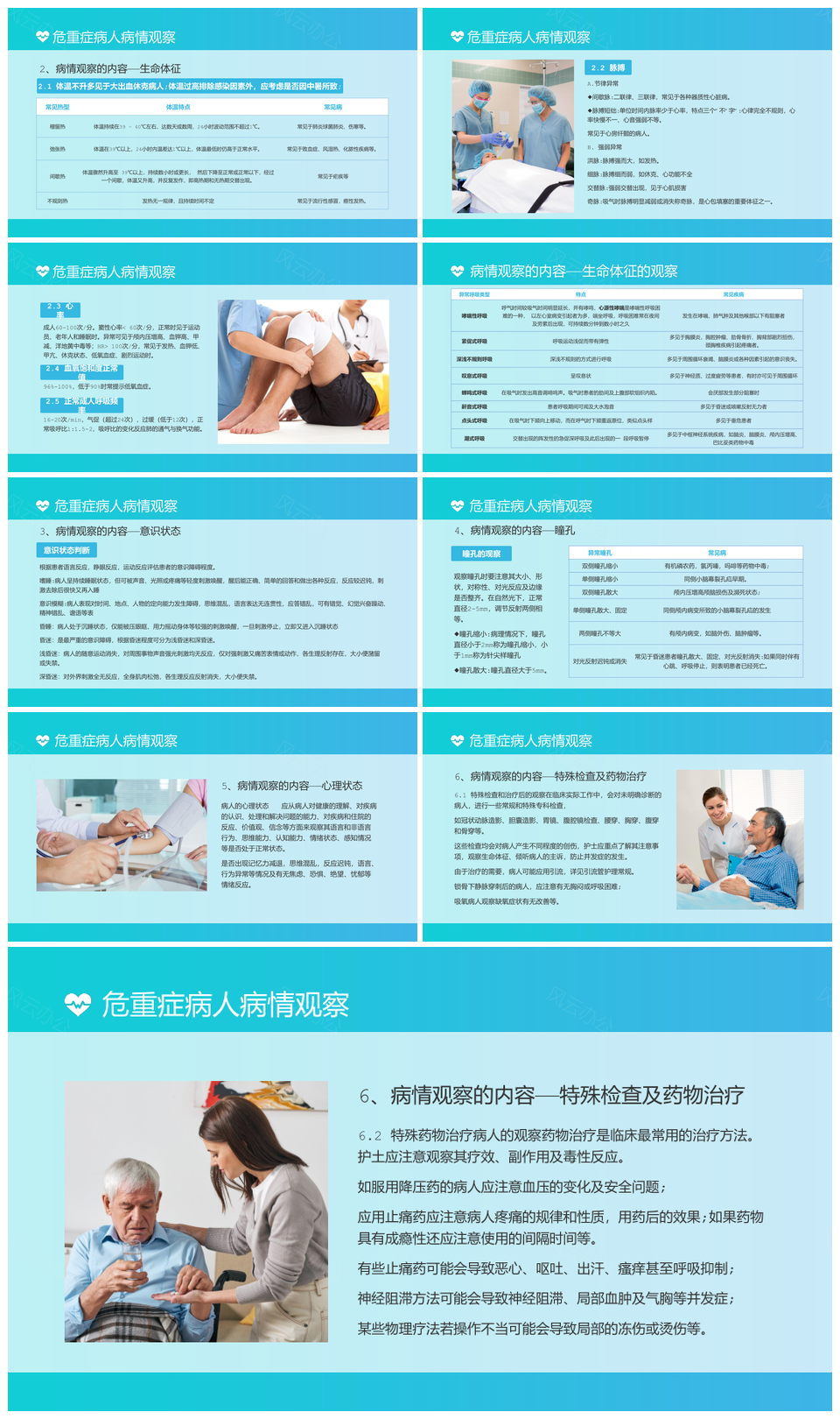风云办公提供的蓝绿简约危重患者护理查房培训实拍PPT模板,下载格式为pptx,一共37页,作品中文字及图均可以修改和编辑,图片更改请在作品中右键图片并更换,文字修改请直接点击文字进行修改。