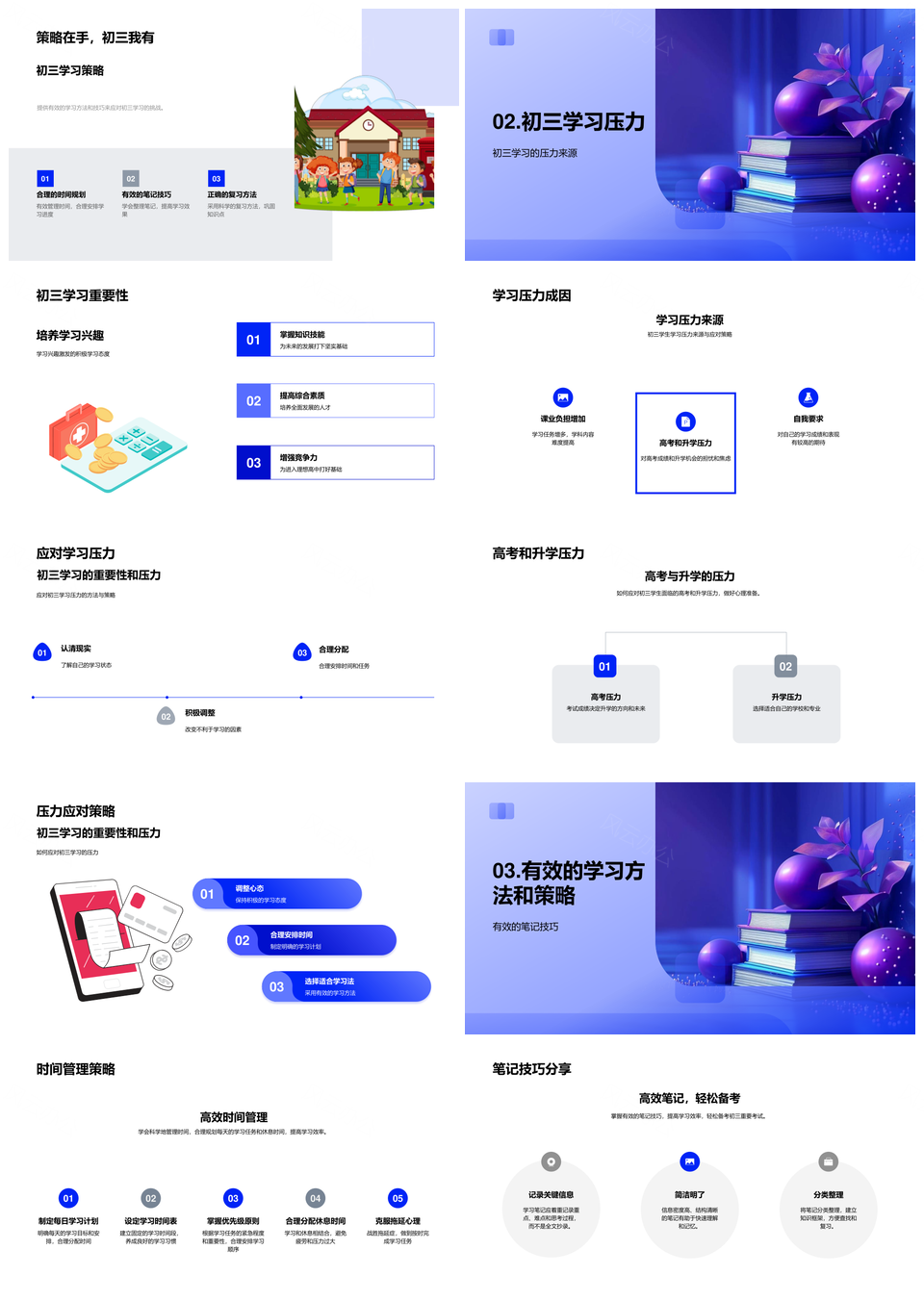 这是一张2025初三高效学习挑战机遇压力应对笔记复习技巧PPT模板,包含2025、初三、高效学习、挑战、机遇、压力、应对、笔记、复习技巧等主题内容,也可用作2025初三高效学习挑战机遇、初三高效学习挑战机遇压力、高效学习挑战机遇压力应对、挑战机遇压力应对复习技巧、2025初三高效学习复习技巧、高效学习挑战机遇复习技巧、挑战机遇压力应对笔记、初三高效学习压力应对、高效学习机遇压力应对、初三挑战机遇压力应对、高效学习笔记复习技巧、机遇压力应对复习技巧、压力应对复习技巧、初三复习技巧、高效学习挑战等PPT场景使用。 风云办公提供的2025初三高效学习挑战机遇压力应对笔记复习技巧PPT模板,下载格式为pptx,一共33页,作品中文字及图均可以修改和编辑,图片更改请在作品中右键图片并更换,文字修改请直接点击文字进行修改。