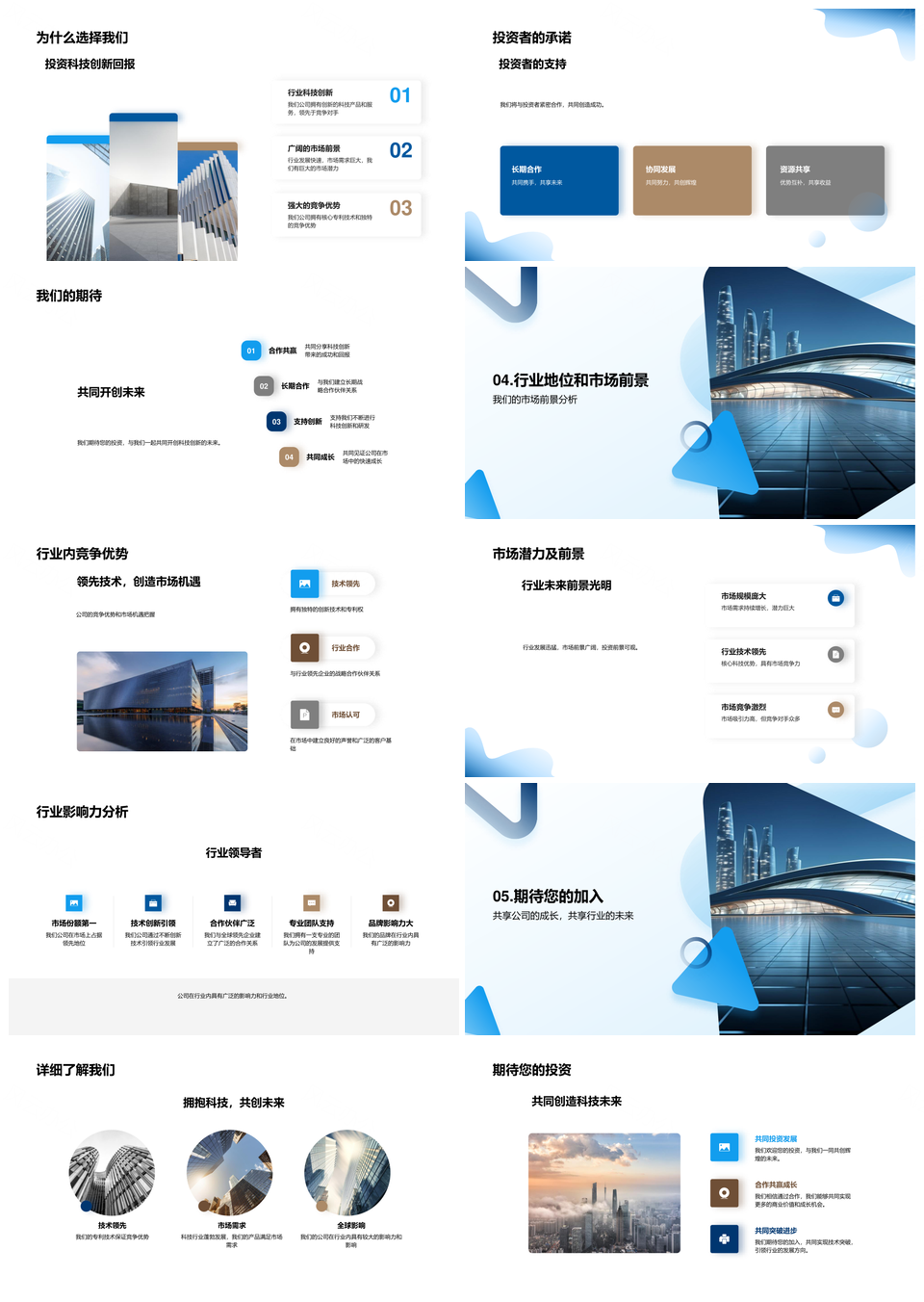 风云办公提供的科技创新驱动创投共赢未来城景PPT模板,下载格式为pptx,一共30页,作品中文字及图均可以修改和编辑,图片更改请在作品中右键图片并更换,文字修改请直接点击文字进行修改。