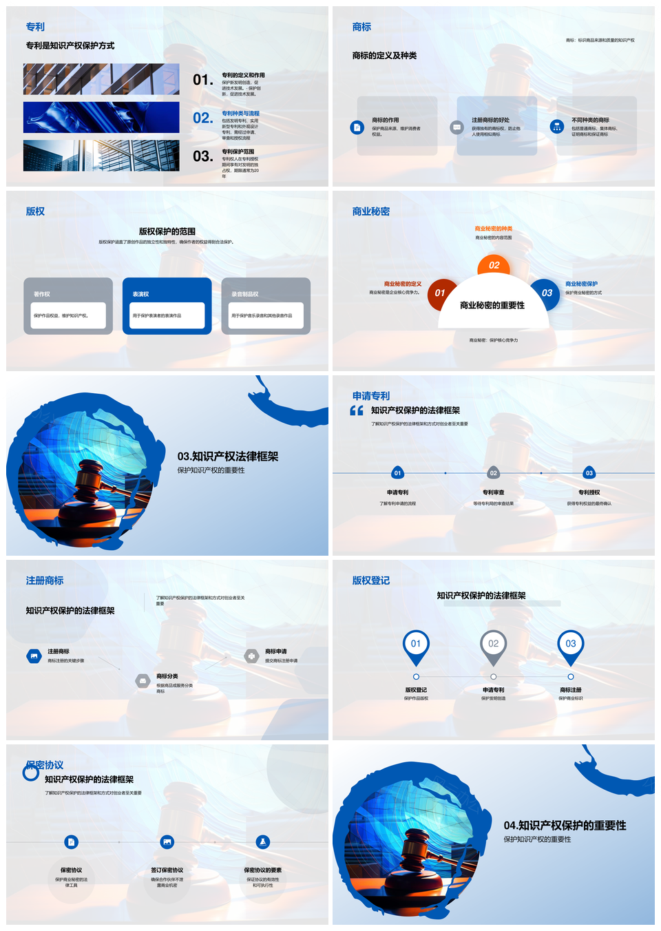 知识产权法槌护商业创新专利商标秘密PPT模板