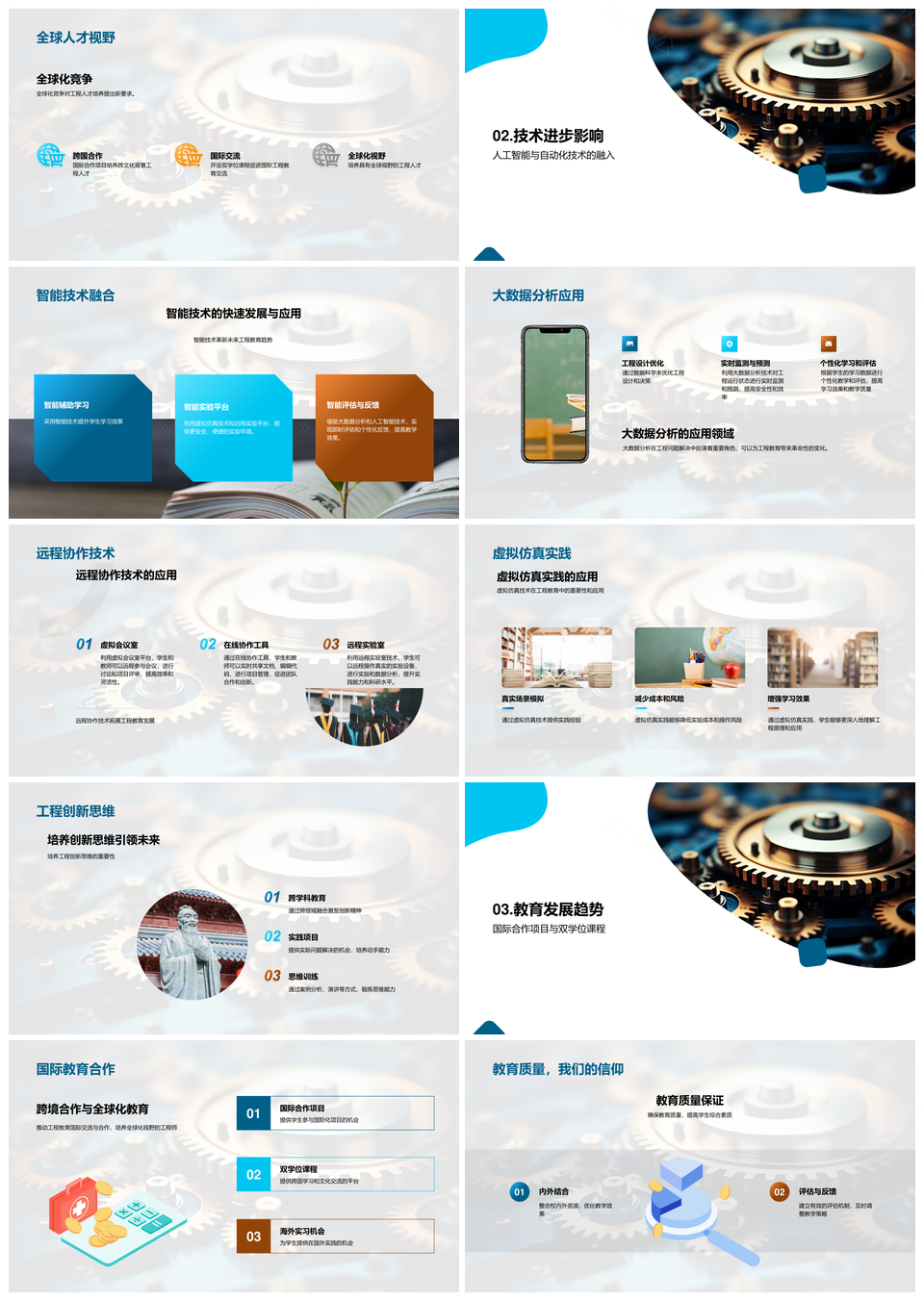 风云办公提供的工程教育智驱全球虚拟协作未来PPT模板,下载格式为pptx,一共33页,作品中文字及图均可以修改和编辑,图片更改请在作品中右键图片并更换,文字修改请直接点击文字进行修改。