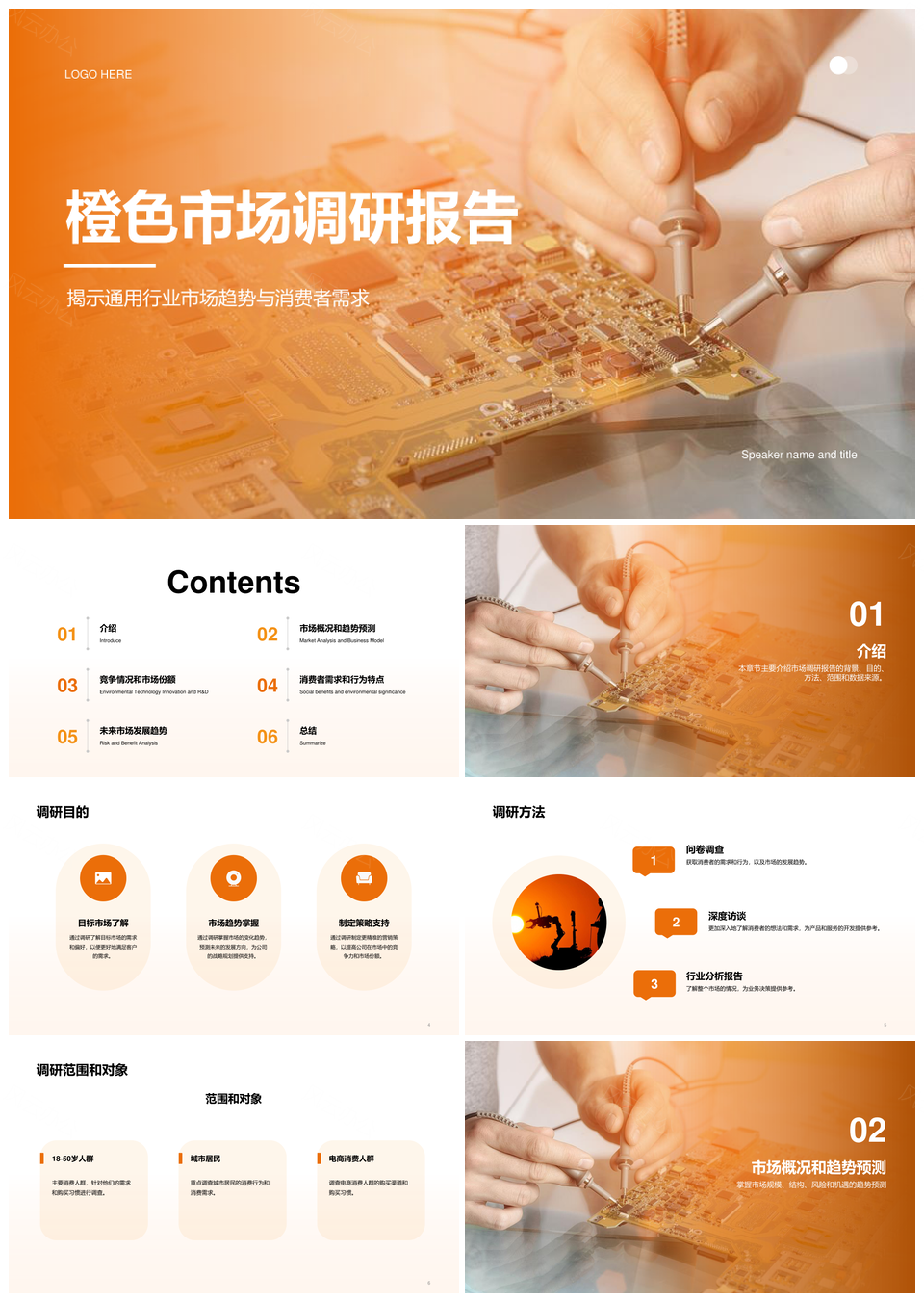 橙色智能科技IT互联网市场调研研究报告CTRPPT模板推荐