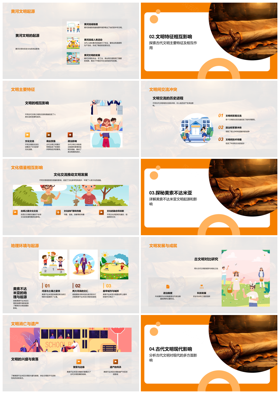 古埃及美索不达米亚文明起源特征影响教育PPT模板