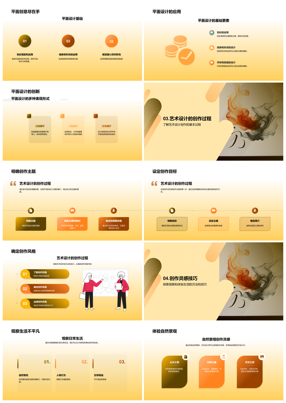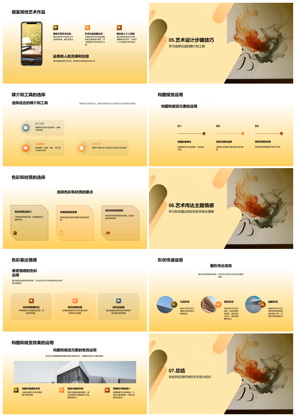 艺术设计创作技巧色彩线条形状笔触分享PPT模板推荐