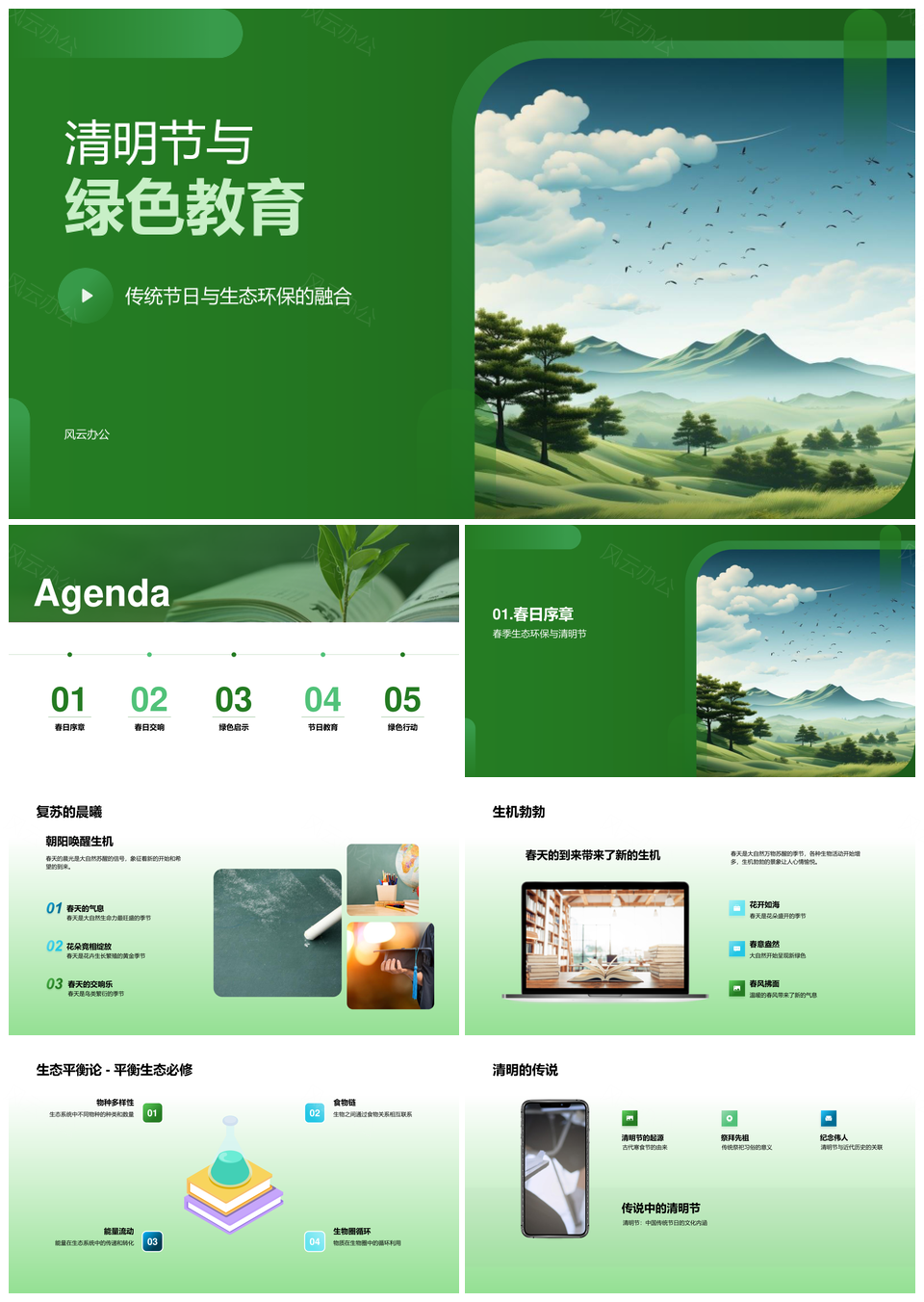 风云办公提供的清明绿色教育传承生态环保习俗PPT模板,下载格式为pptx,一共33页,作品中文字及图均可以修改和编辑,图片更改请在作品中右键图片并更换,文字修改请直接点击文字进行修改。