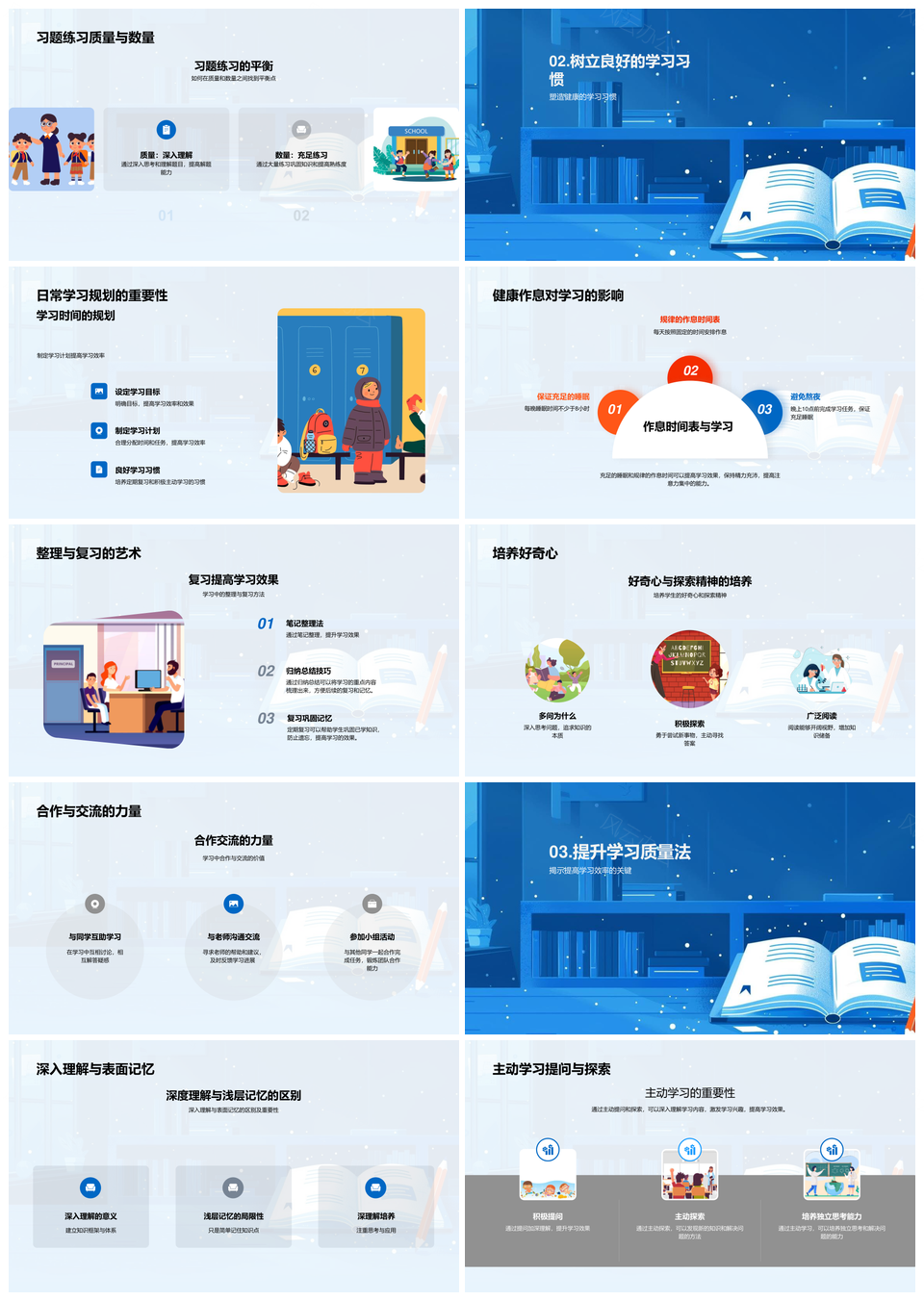 高二学生会高效学习策略SQ3R艾宾浩斯班会报告PPT模板