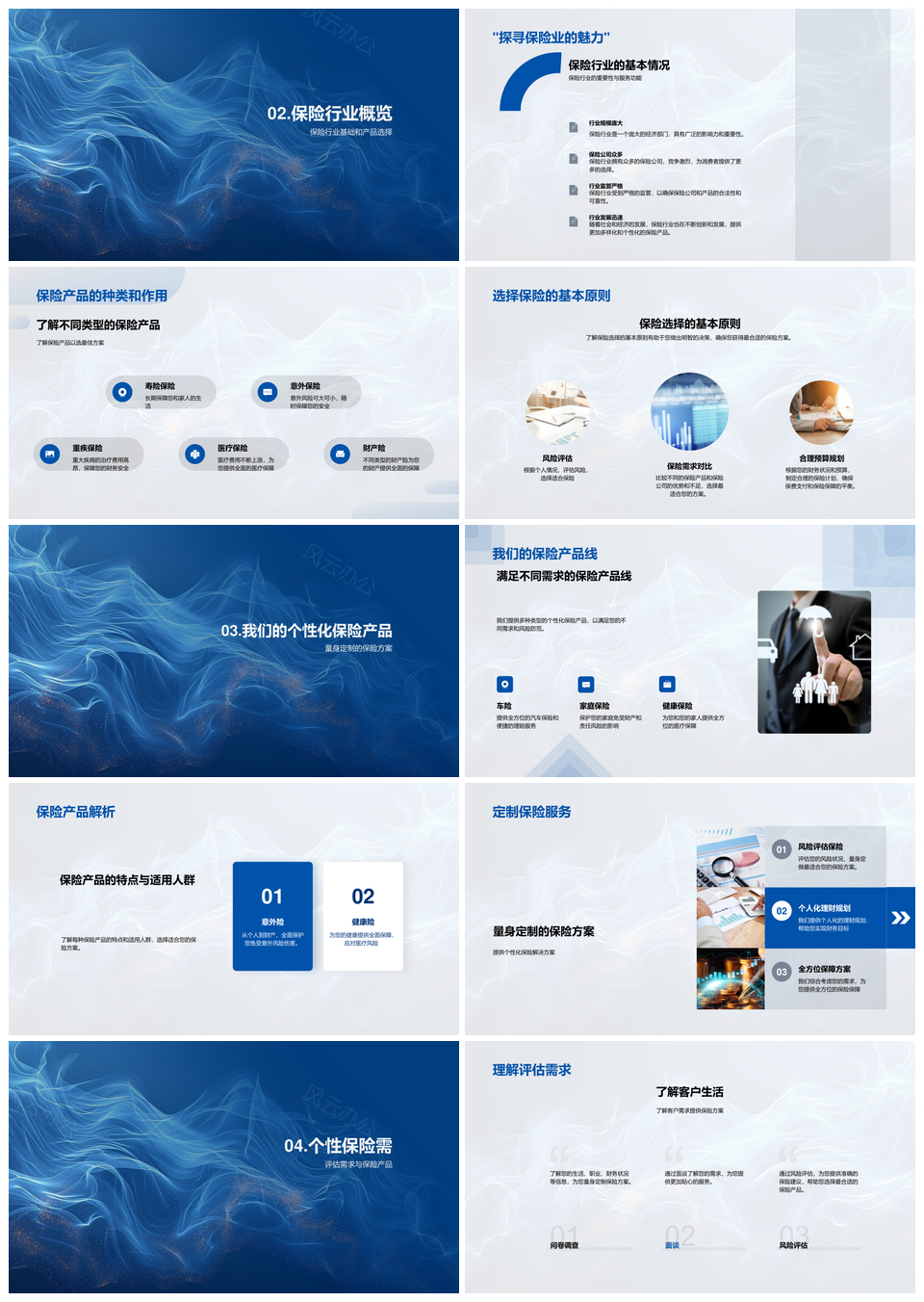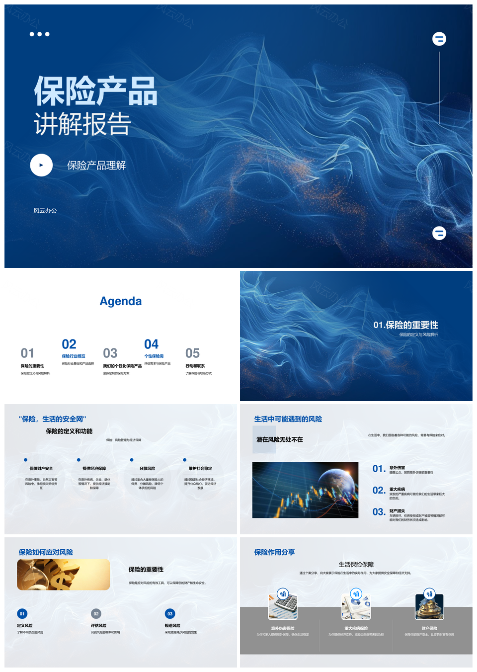 风云办公提供的保险产品风险管理与个性化服务定制PPT模板,下载格式为pptx,一共24页,作品中文字及图均可以修改和编辑,图片更改请在作品中右键图片并更换,文字修改请直接点击文字进行修改。