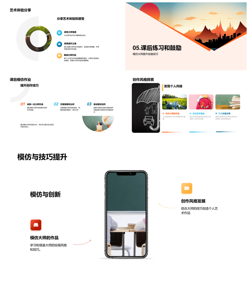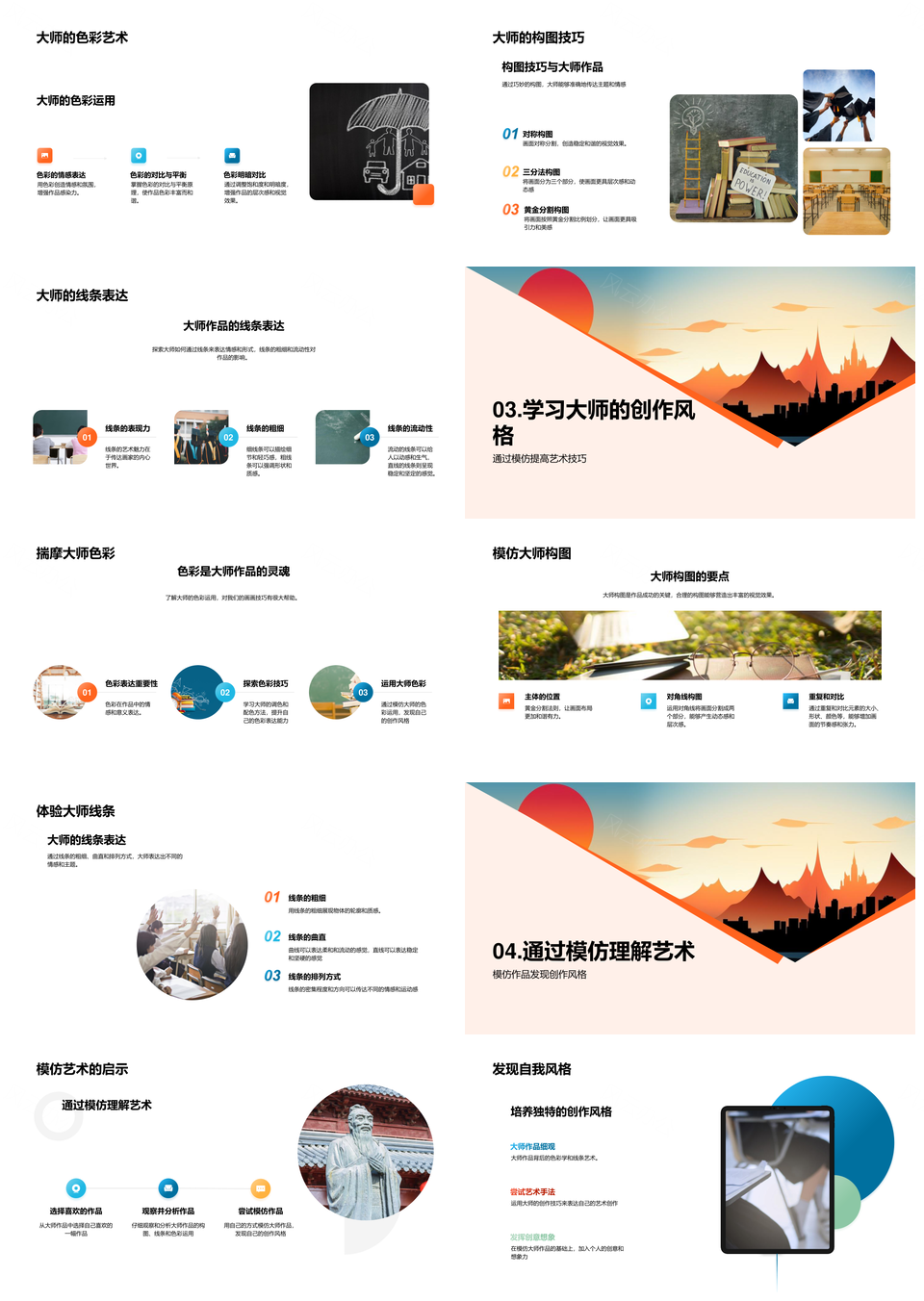 艺术大师创作技巧色彩构图线条风格模仿PPT模板推荐